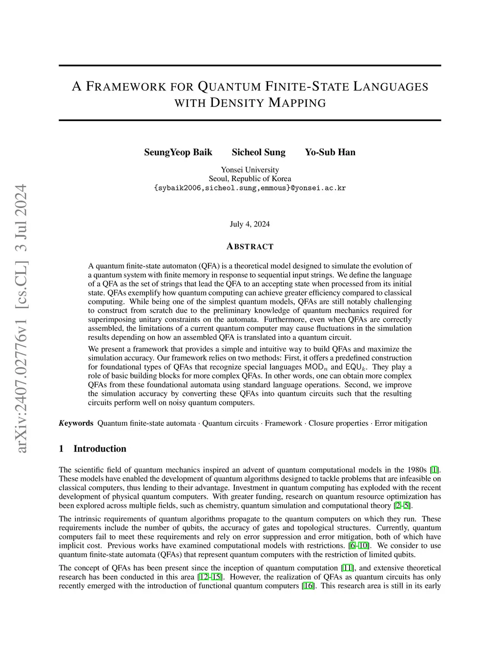 A Framework for Quantum Finite-State Languages with Density Mapping