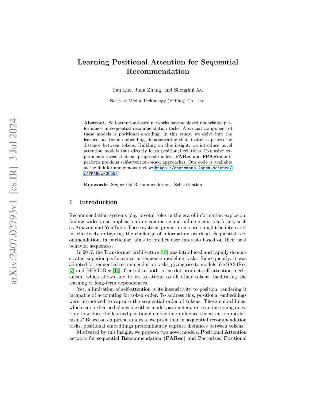 Self-attention-based networks have achieved remarkable performance in sequential recommendation tasks. A crucial component of these models is positional encoding. In this study, we delve into the learned positional embedding, demonstrating that it often captures the distance between tokens. Building on this insight, we introduce novel attention models that directly learn positional relations. Extensive experiments reveal that our proposed models, \textbf{PARec} and \textbf{FPARec} outperform previous self-attention-based approaches.Our code is available at the link for anonymous review: https://anonymous.4open.science/ r/FPARec-2C55/