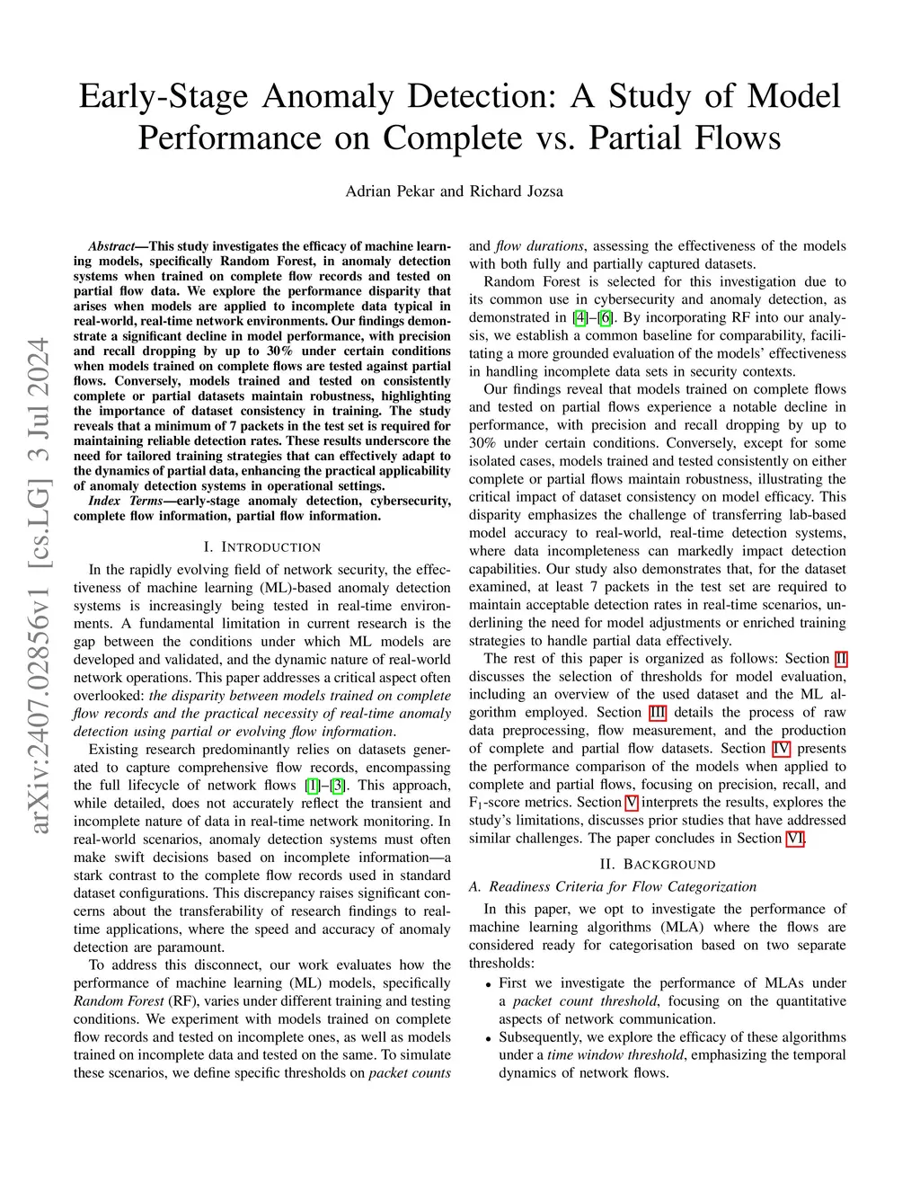 Early-Stage Anomaly Detection: A Study of Model Performance on Complete vs. Partial Flows