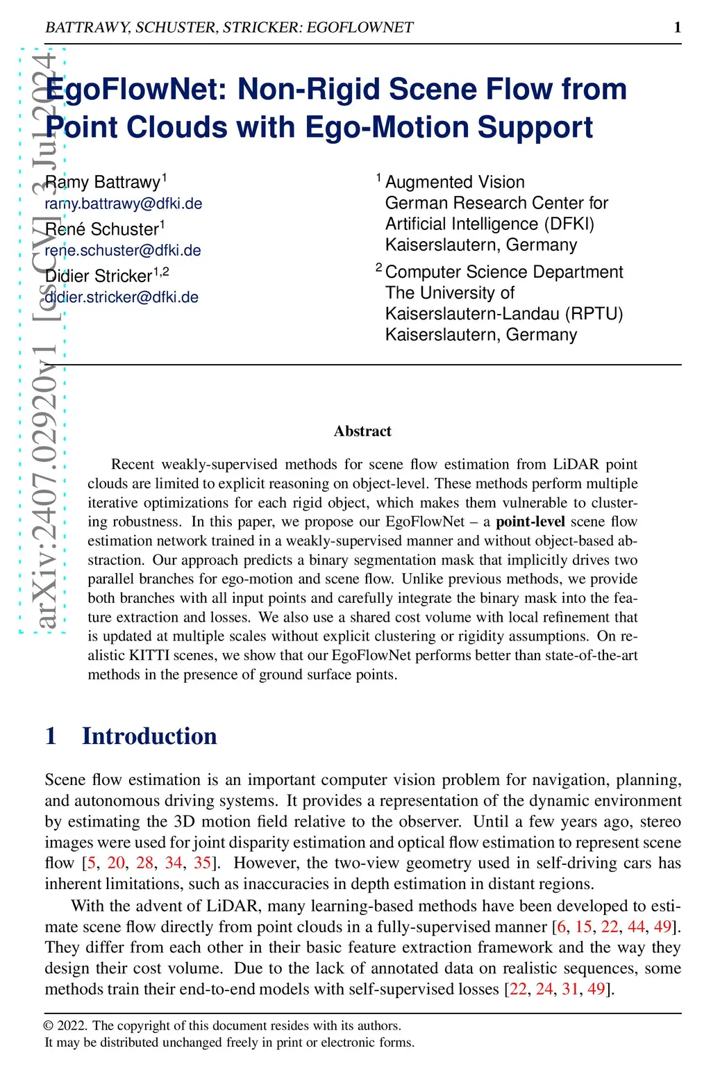 Recent weakly-supervised methods for scene flow estimation from LiDAR point clouds are limited to explicit reasoning on object-level. These methods perform multiple iterative optimizations for each rigid object, which makes them vulnerable to clustering robustness. In this paper, we propose our EgoFlowNet - a point-level scene flow estimation network trained in a weakly-supervised manner and without object-based abstraction. Our approach predicts a binary segmentation mask that implicitly drives two parallel branches for ego-motion and scene flow. Unlike previous methods, we provide both branches with all input points and carefully integrate the binary mask into the feature extraction and losses. We also use a shared cost volume with local refinement that is updated at multiple scales without explicit clustering or rigidity assumptions. On realistic KITTI scenes, we show that our EgoFlowNet performs better than state-of-the-art methods in the presence of ground surface points.