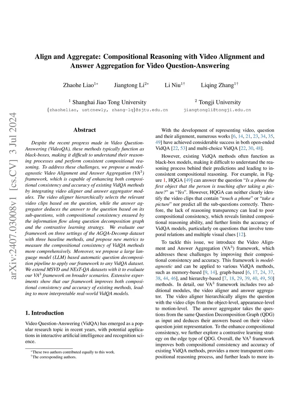 Despite the recent progress made in Video Question-Answering (VideoQA), these methods typically function as black-boxes, making it difficult to understand their reasoning processes and perform consistent compositional reasoning. To address these challenges, we propose a \textit{model-agnostic} Video Alignment and Answer Aggregation (VA) framework, which is capable of enhancing both compositional consistency and accuracy of existing VidQA methods by integrating video aligner and answer aggregator modules. The video aligner hierarchically selects the relevant video clips based on the question, while the answer aggregator deduces the answer to the question based on its sub-questions, with compositional consistency ensured by the information flow along question decomposition graph and the contrastive learning strategy. We evaluate our framework on three settings of the AGQA-Decomp dataset with three baseline methods, and propose new metrics to measure the compositional consistency of VidQA methods more comprehensively. Moreover, we propose a large language model (LLM) based automatic question decomposition pipeline to apply our framework to any VidQA dataset. We extend MSVD and NExT-QA datasets with it to evaluate our VA framework on broader scenarios. Extensive experiments show that our framework improves both compositional consistency and accuracy of existing methods, leading to more interpretable real-world VidQA models.