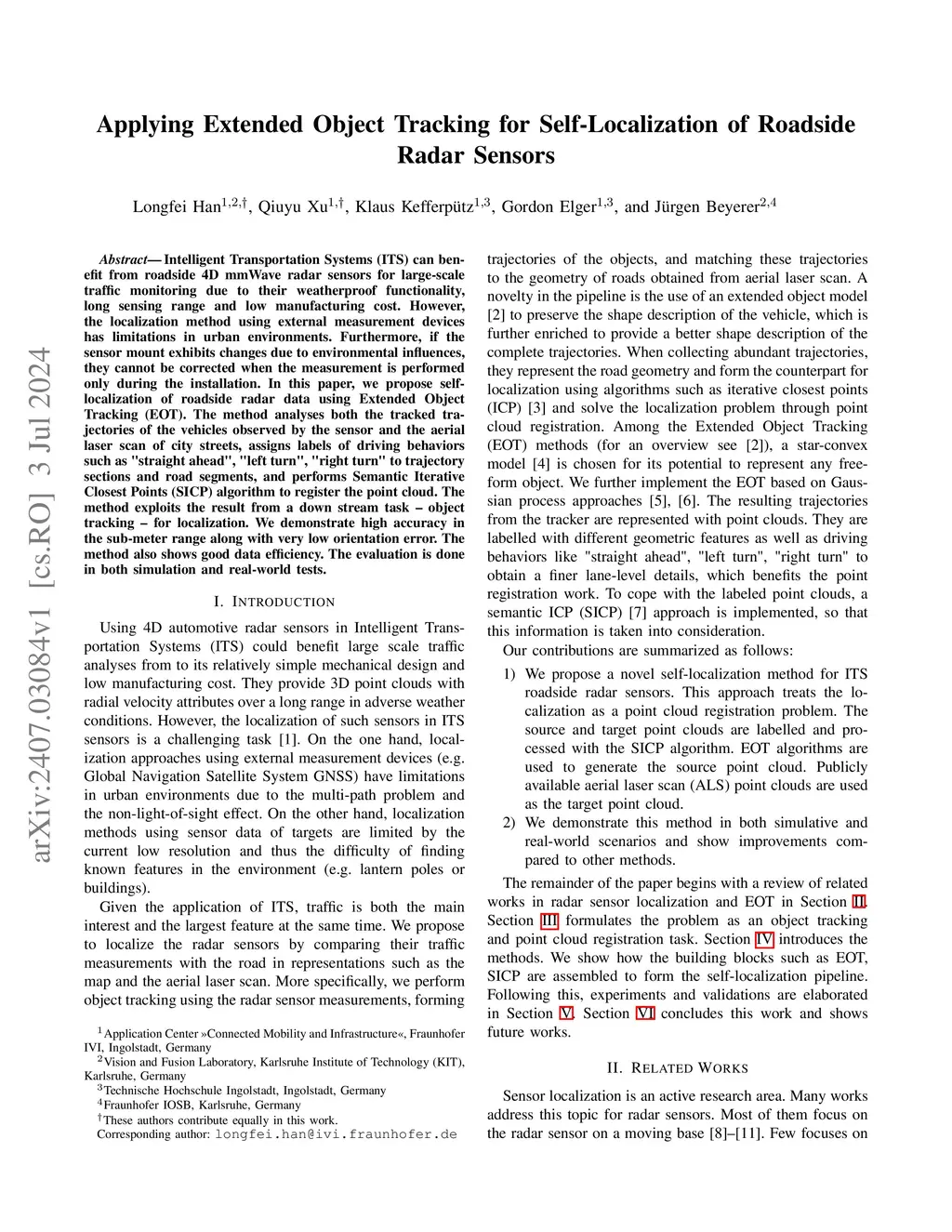 Applying Extended Object Tracking for Self-Localization of Roadside