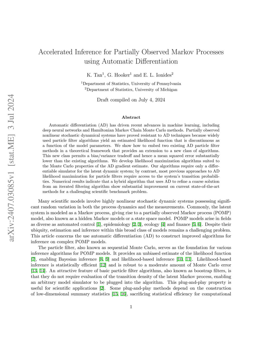Automatic differentiation (AD) has driven recent advances in machine learning, including deep neural networks and Hamiltonian Markov Chain Monte Carlo methods. Partially observed nonlinear stochastic dynamical systems have proved resistant to AD techniques because widely used particle filter algorithms yield an estimated likelihood function that is discontinuous as a function of the model parameters. We show how to embed two existing AD particle filter methods in a theoretical framework that provides an extension to a new class of algorithms. This new class permits a bias/variance tradeoff and hence a mean squared error substantially lower than the existing algorithms. We develop likelihood maximization algorithms suited to the Monte Carlo properties of the AD gradient estimate. Our algorithms require only a differentiable simulator for the latent dynamic system; by contrast, most previous approaches to AD likelihood maximization for particle filters require access to the system's transition probabilities. Numerical results indicate that a hybrid algorithm that uses AD to refine a coarse solution from an iterated filtering algorithm show substantial improvement on current state-of-the-art methods for a challenging scientific benchmark problem.