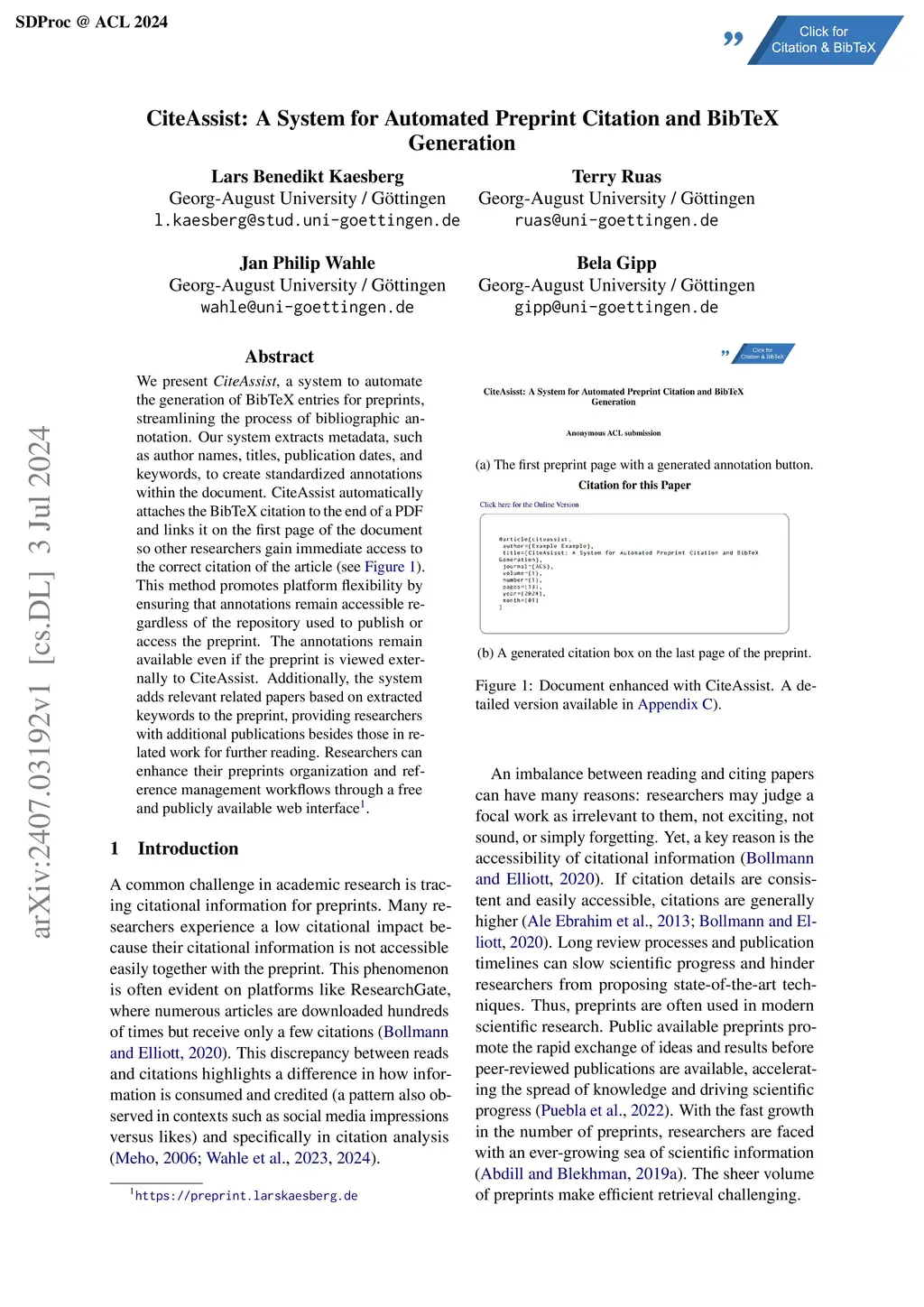 CiteAssist: A System for Automated Preprint Citation and BibTeX