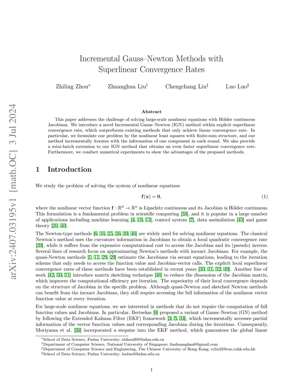 This paper addresses the challenge of solving large-scale nonlinear equations with H\"older continuous Jacobians. We introduce a novel Incremental Gauss--Newton (IGN) method within explicit superlinear convergence rate, which outperforms existing methods that only achieve linear convergence rate. In particular, we formulate our problem by the nonlinear least squares with finite-sum structure, and our method incrementally iterates with the information of one component in each round. We also provide a mini-batch extension to our IGN method that obtains an even faster superlinear convergence rate. Furthermore, we conduct numerical experiments to show the advantages of the proposed methods.