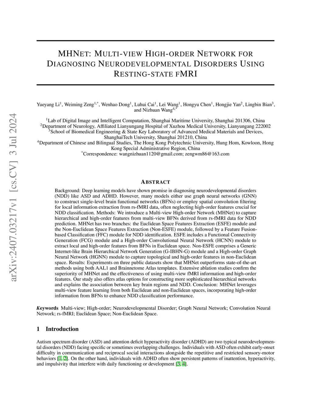 MHNet: Multi-view High-order Network for Diagnosing Neurodevelopmental Disorders Using Resting-state fMRI