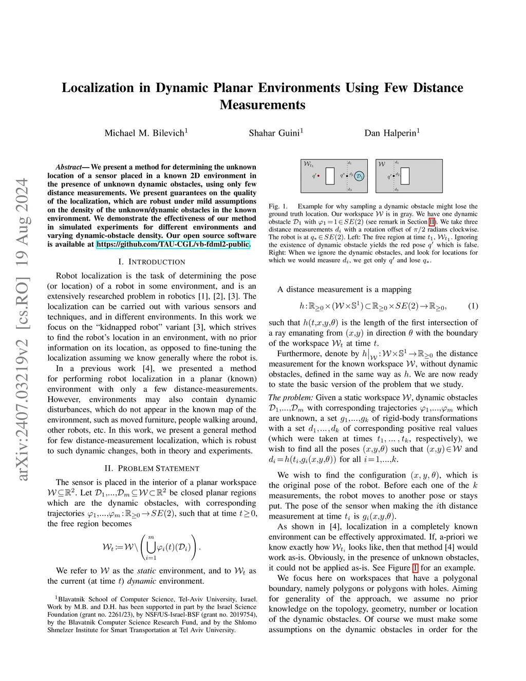We present a method for determining the unknown location of a sensor placed in a known 2D environment in the presence of unknown dynamic obstacles, using only few distance measurements. We present guarantees on the quality of the localization, which are robust under mild assumptions on the density of the unknown/dynamic obstacles in the known environment. We demonstrate the effectiveness of our method in simulated experiments for different environments and varying dynamic-obstacle density. Our open source software is available at https://github.com/TAU-CGL/vb-fdml2-public.
