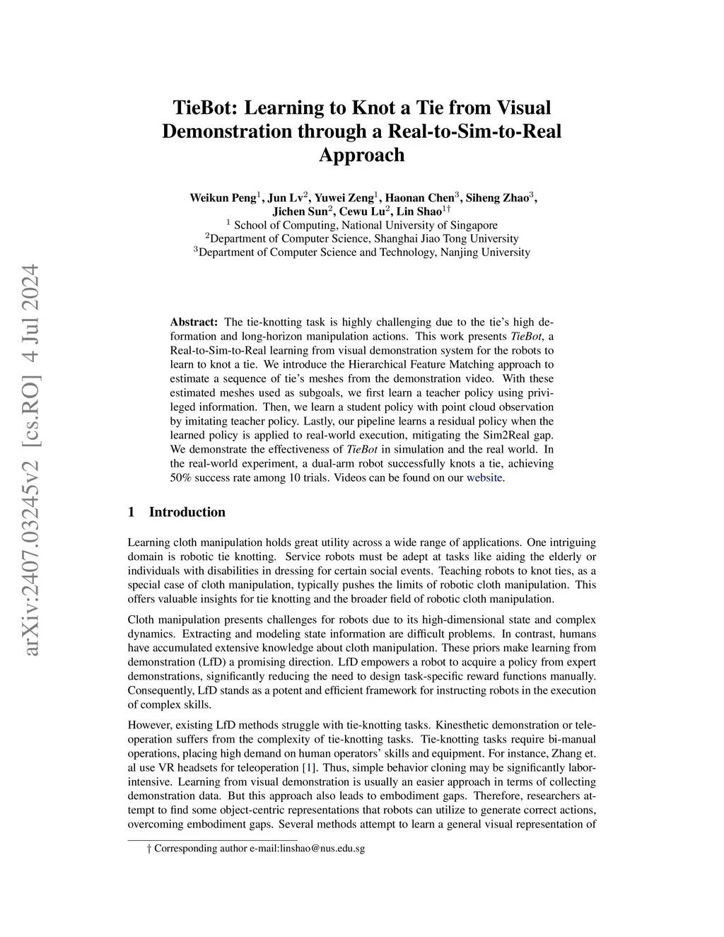 TieBot: Learning to Knot a Tie from Visual Demonstration through a