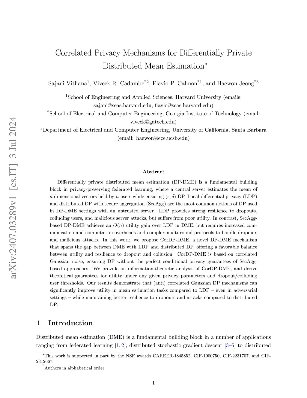 Differentially private distributed mean estimation (DP-DME) is a fundamental building block in privacy-preserving federated learning, where a central server estimates the mean of -dimensional vectors held by users while ensuring -DP. Local differential privacy (LDP) and distributed DP with secure aggregation (SA) are the most common notions of DP used in DP-DME settings with an untrusted server. LDP provides strong resilience to dropouts, colluding users, and adversarial attacks, but suffers from poor utility. In contrast, SA-based DP-DME achieves an utility gain over LDP in DME, but requires increased communication and computation overheads and complex multi-round protocols to handle dropouts and attacks. In this work, we present a generalized framework for DP-DME, that captures LDP and SA-based mechanisms as extreme cases. Our framework provides a foundation for developing and analyzing a variety of DP-DME protocols that leverage correlated privacy mechanisms across users. To this end, we propose CorDP-DME, a novel DP-DME mechanism based on the correlated Gaussian mechanism, that spans the gap between DME with LDP and distributed DP. We prove that CorDP-DME offers a favorable balance between utility and resilience to dropout and collusion. We provide an information-theoretic analysis of CorDP-DME, and derive theoretical guarantees for utility under any given privacy parameters and dropout/colluding user thresholds. Our results demonstrate that (anti) correlated Gaussian DP mechanisms can significantly improve utility in mean estimation tasks compared to LDP -- even in adversarial settings -- while maintaining better resilience to dropouts and attacks compared to distributed DP.