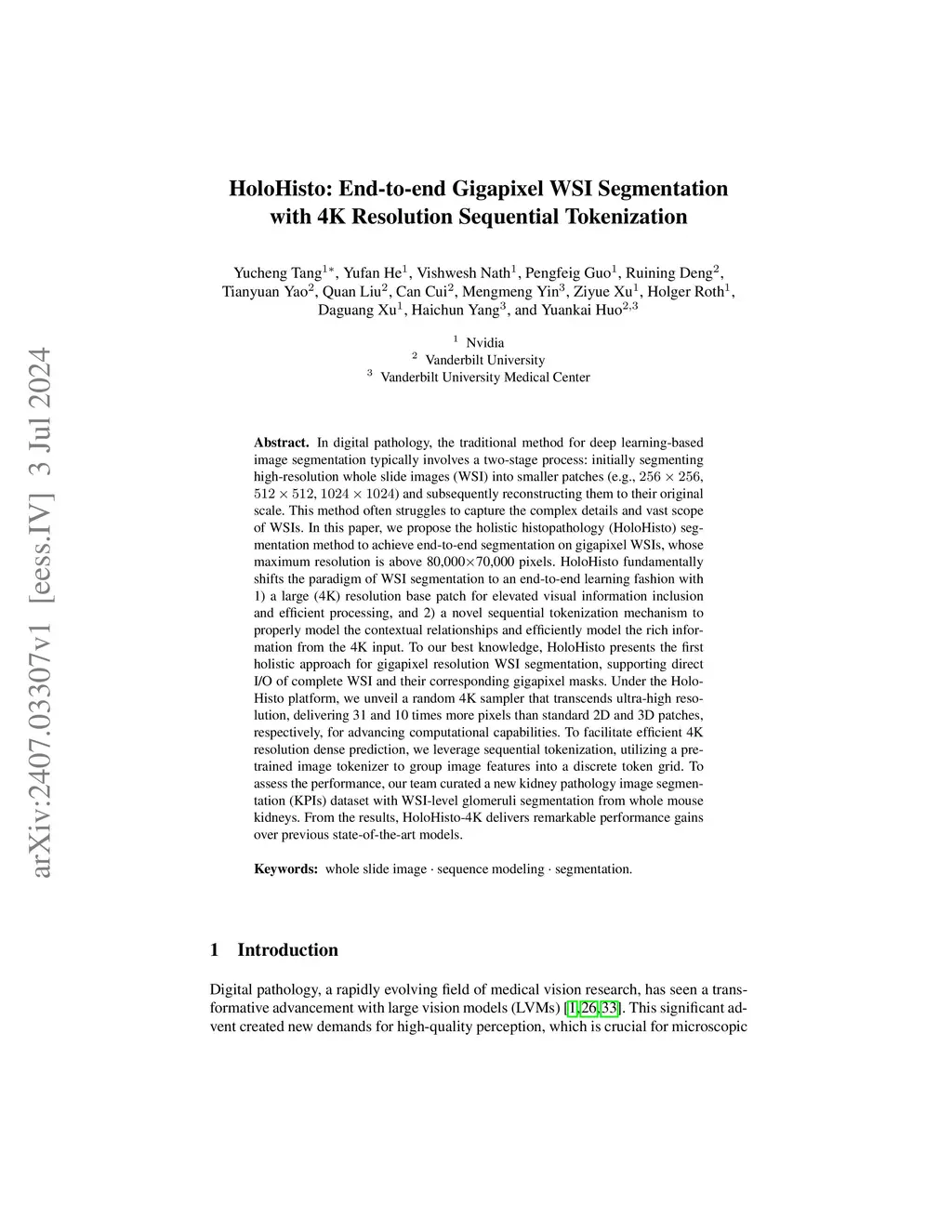 HoloHisto: End-to-end Gigapixel WSI Segmentation with 4K Resolution