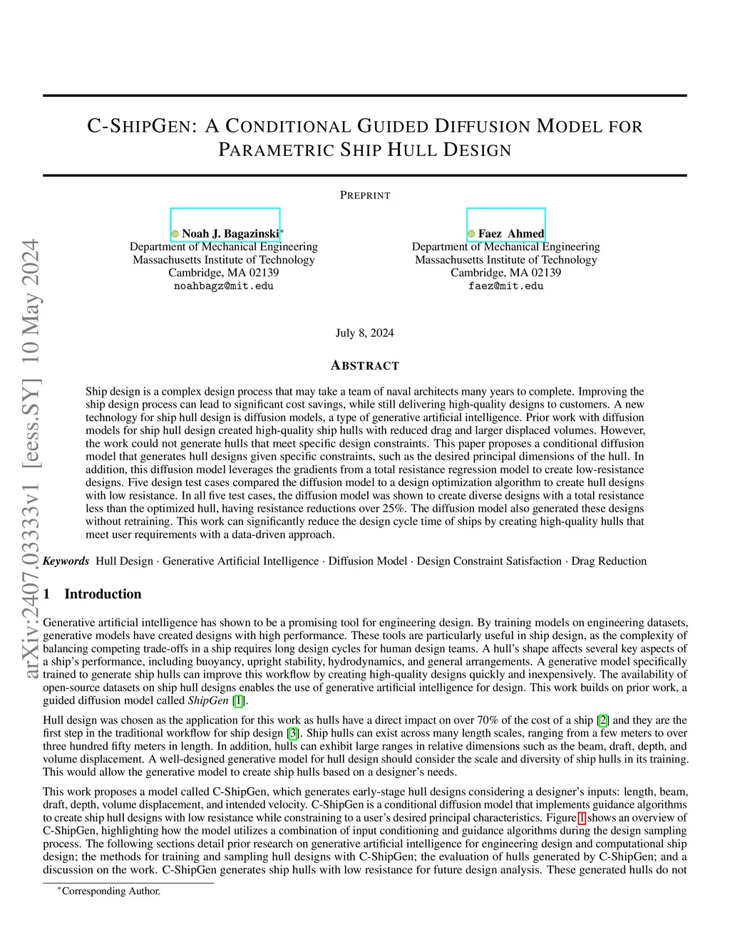 C-ShipGen: A Conditional Guided Diffusion Model for Parametric Ship Hull