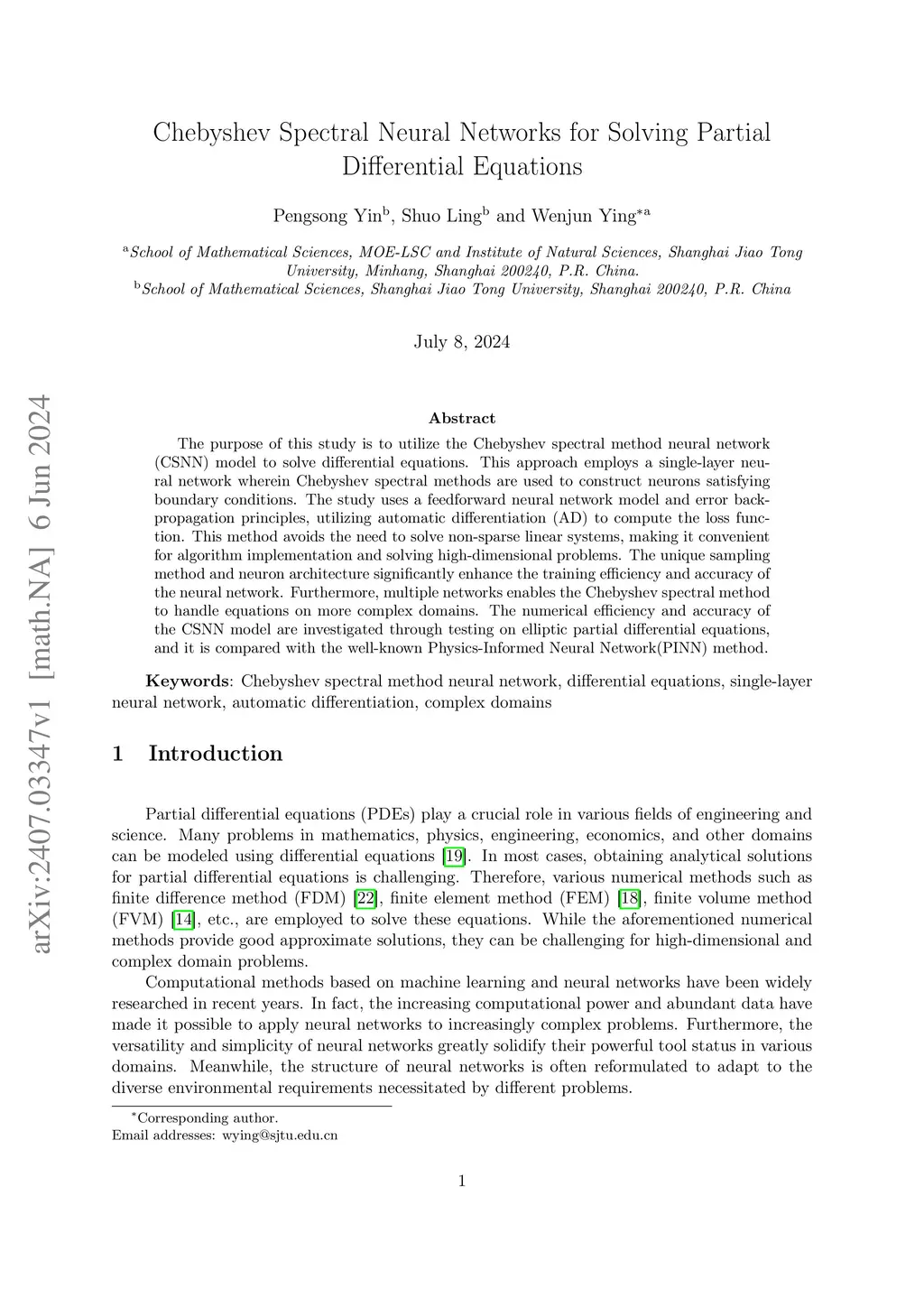 Chebyshev Spectral Neural Networks for Solving Partial Differential