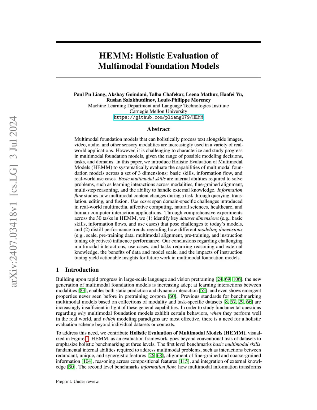 HEMM: Holistic Evaluation of Multimodal Foundation Models