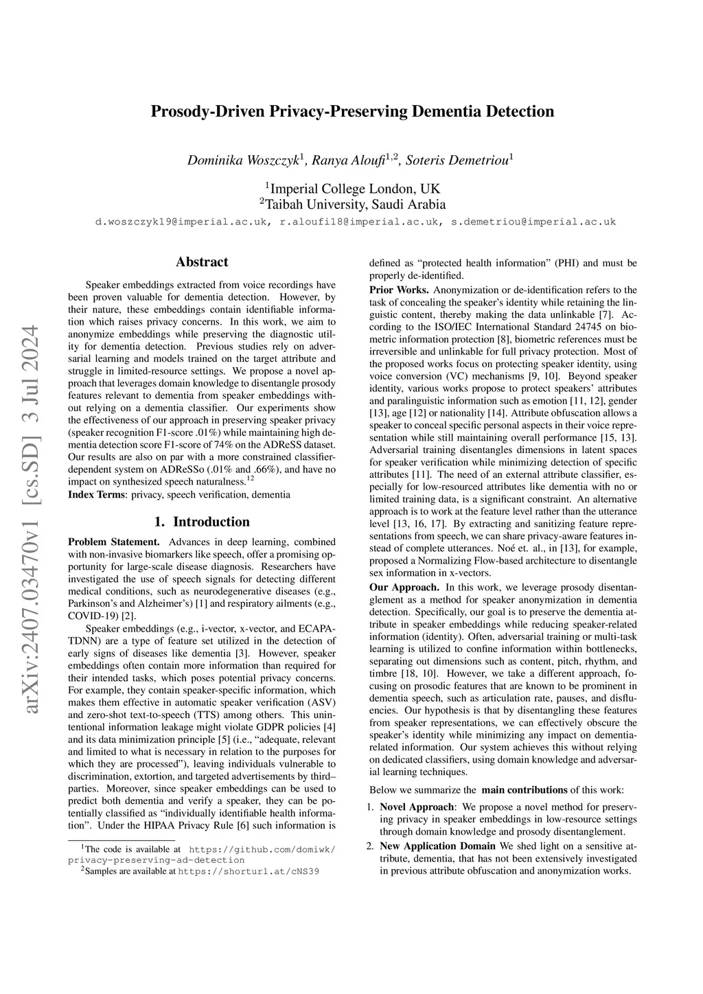 Prosody-Driven Privacy-Preserving Dementia Detection