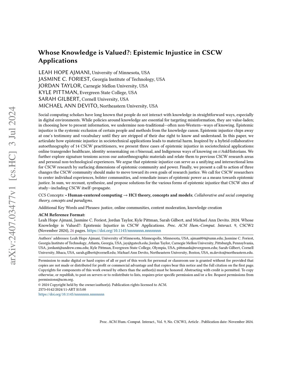 Whose Knowledge is Valued?: Epistemic Injustice in CSCW Applications