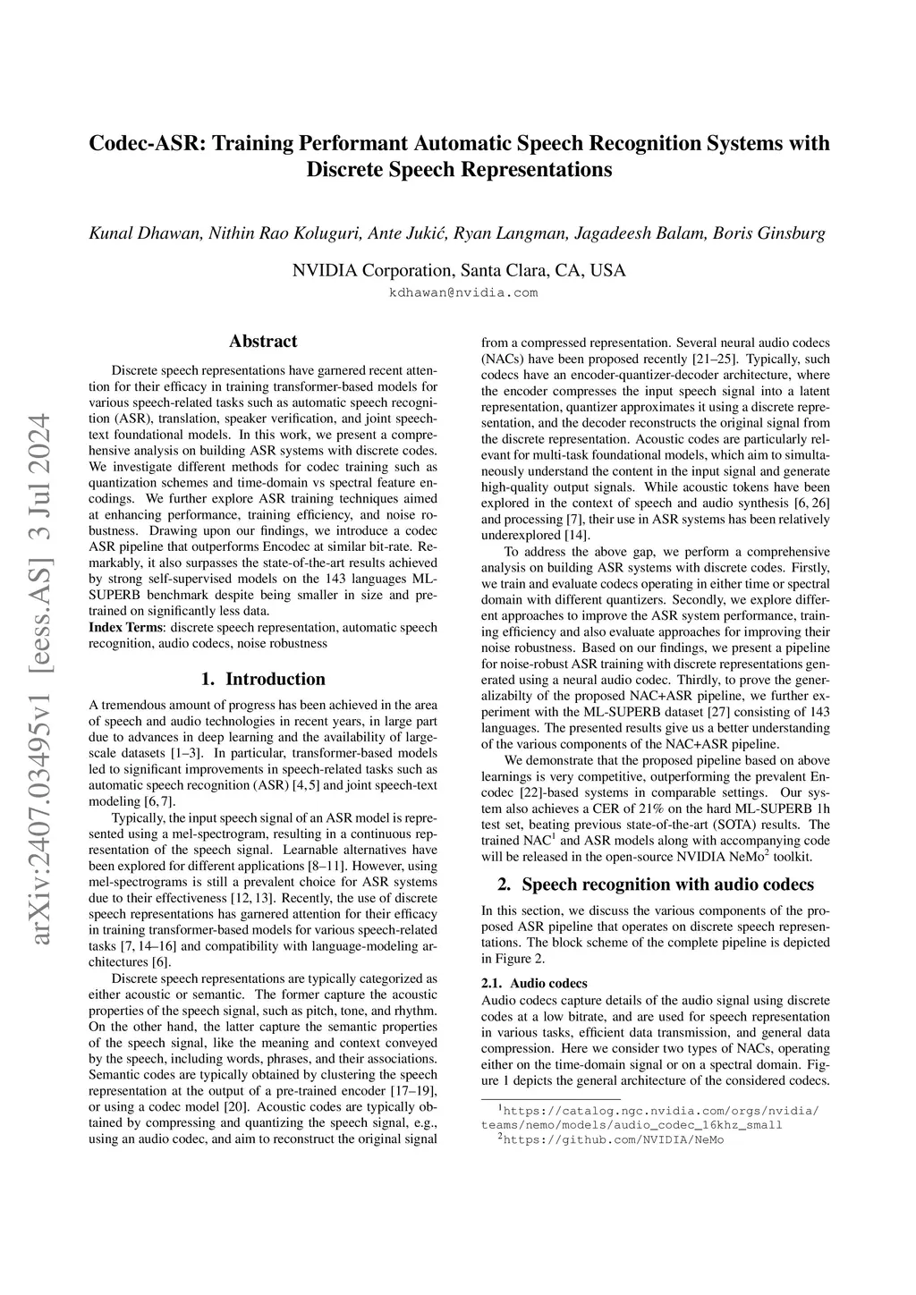 Codec-ASR: Training Performant Automatic Speech Recognition Systems with