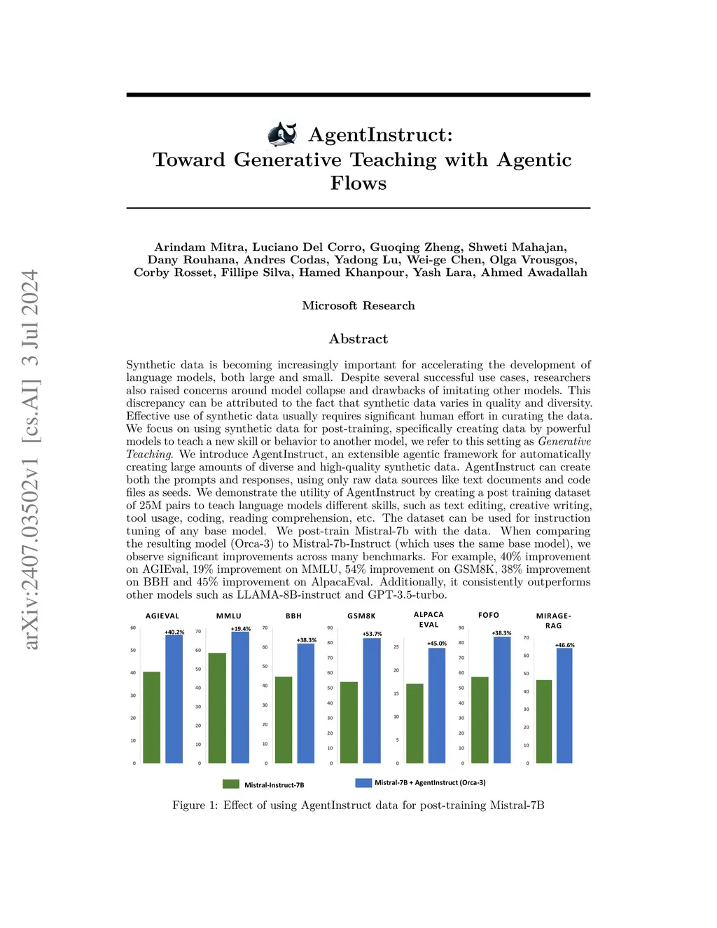 AgentInstruct: Toward Generative Teaching with Agentic Flows