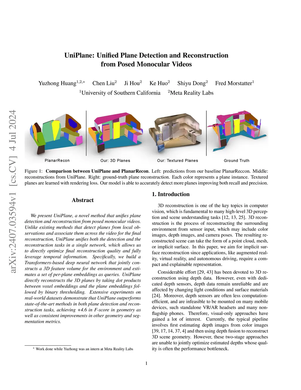 UniPlane: Unified Plane Detection and Reconstruction from Posed