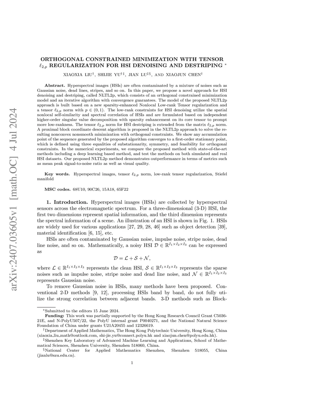 Orthogonal Constrained Minimization with Tensor Regularization for HSI Denoising and Destriping
