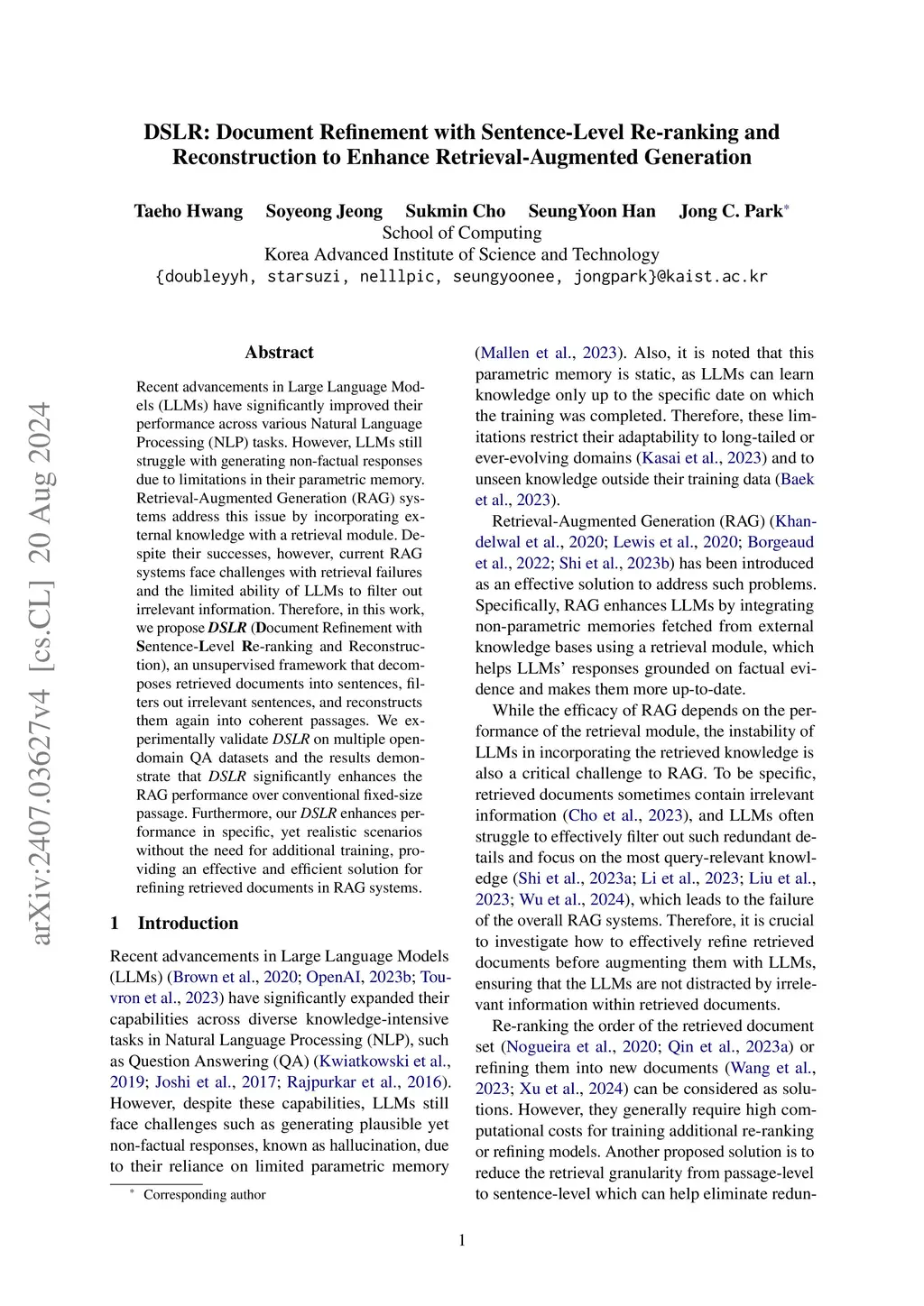 DSLR: Document Refinement with Sentence-Level Re-ranking and