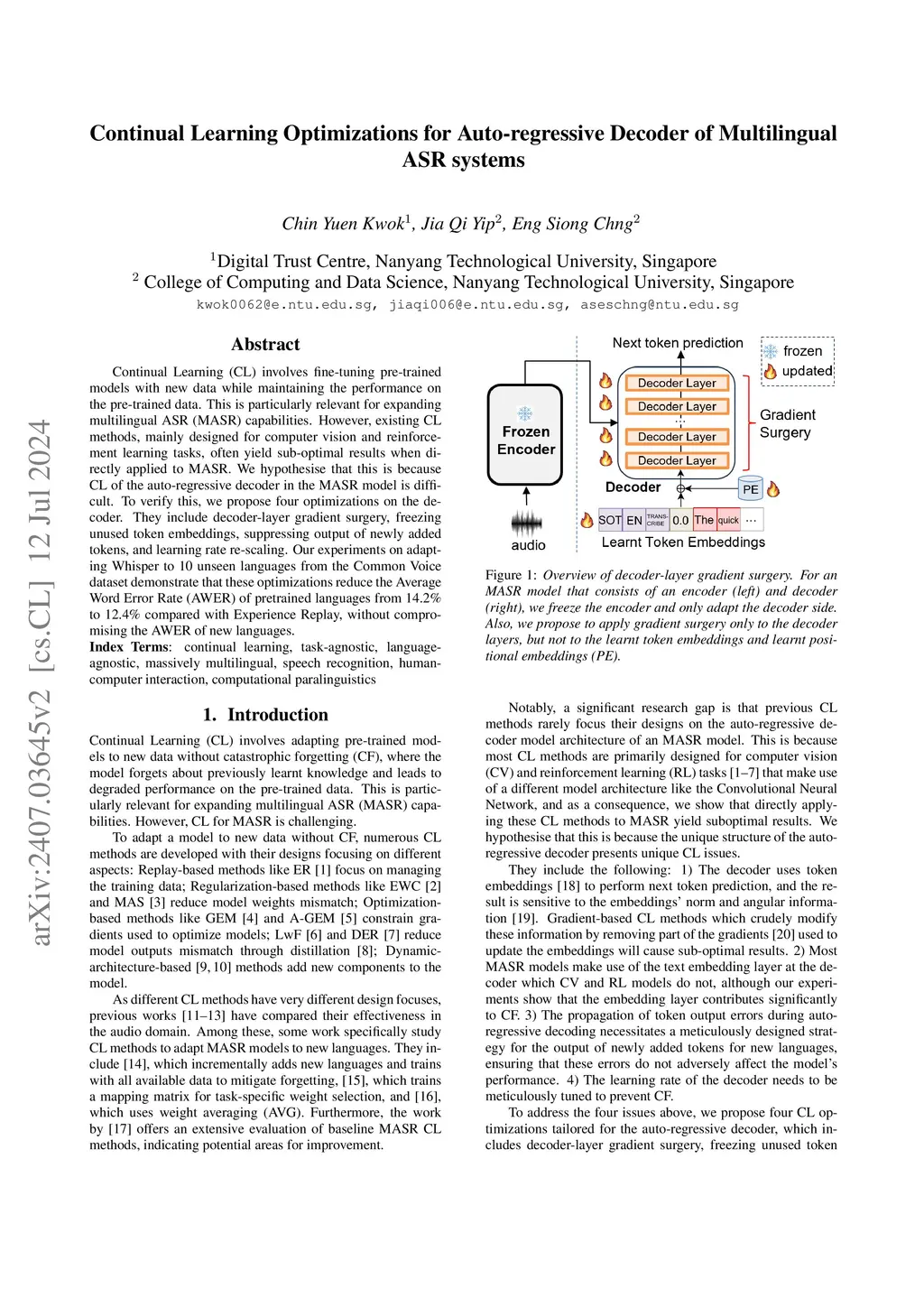 Continual Learning Optimizations for Auto-regressive Decoder of