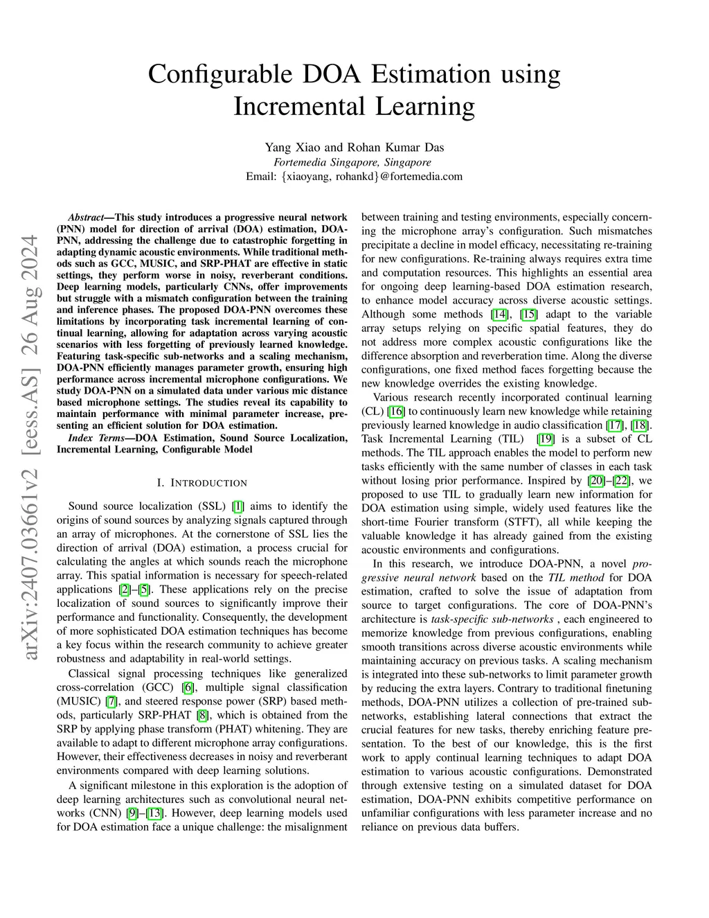 Sound source localization (SSL) is essential for many speech-processing applications. Deep learning models have achieved high performance, but often fail when the training and inference environments differ. Adapting SSL models to dynamic acoustic conditions faces a major challenge: catastrophic forgetting. In this work, we propose an exemplar-free continual learning strategy for SSL (CL-SSL) to address such a forgetting phenomenon. CL-SSL applies task-specific sub-networks to adapt across diverse acoustic environments while retaining previously learned knowledge. It also uses a scaling mechanism to limit parameter growth, ensuring consistent performance across incremental tasks. We evaluated CL-SSL on simulated data with varying microphone distances and real-world data with different noise levels. The results demonstrate CL-SSL's ability to maintain high accuracy with minimal parameter increase, offering an efficient solution for SSL applications.
