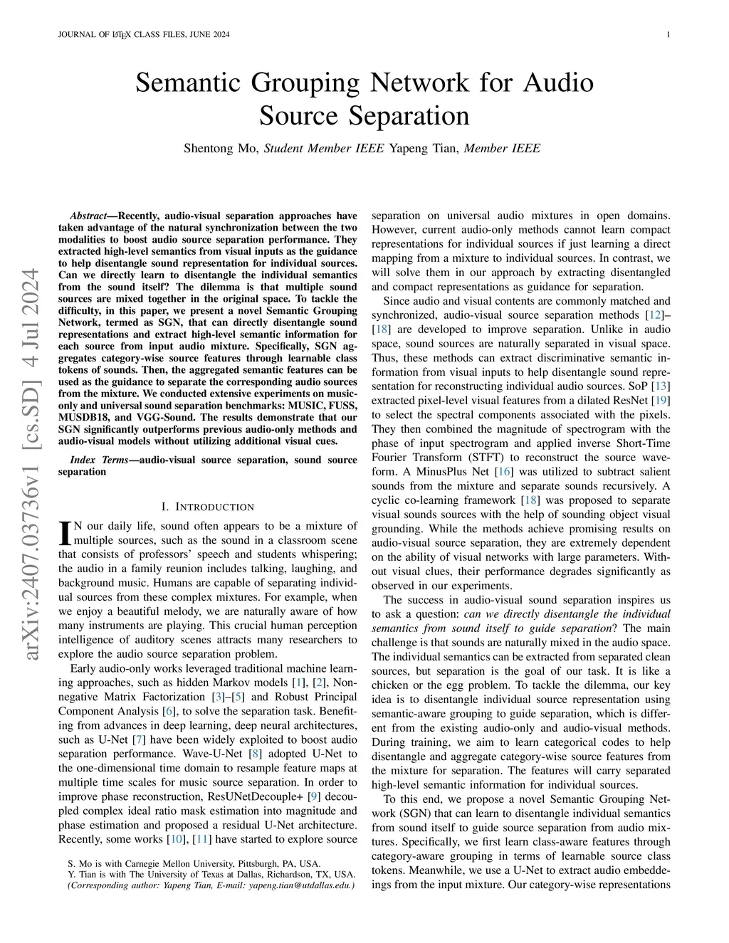 Semantic Grouping Network for Audio Source Separation