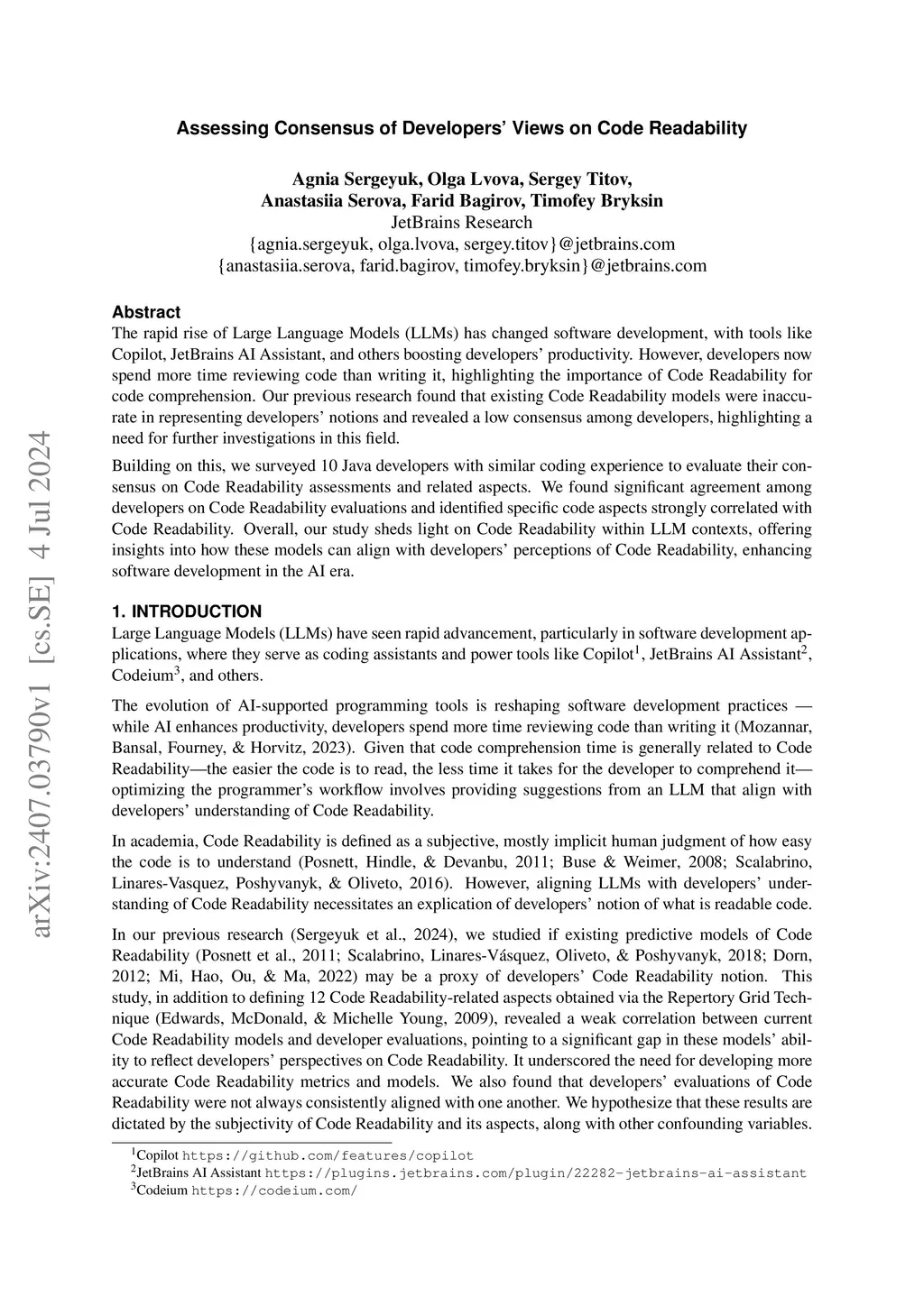 The rapid rise of Large Language Models (LLMs) has changed software development, with tools like Copilot, JetBrains AI Assistant, and others boosting developers' productivity. However, developers now spend more time reviewing code than writing it, highlighting the importance of Code Readability for code comprehension. Our previous research found that existing Code Readability models were inaccurate in representing developers' notions and revealed a low consensus among developers, highlighting a need for further investigations in this field. Building on this, we surveyed 10 Java developers with similar coding experience to evaluate their consensus on Code Readability assessments and related aspects. We found significant agreement among developers on Code Readability evaluations and identified specific code aspects strongly correlated with Code Readability. Overall, our study sheds light on Code Readability within LLM contexts, offering insights into how these models can align with developers' perceptions of Code Readability, enhancing software development in the AI era.