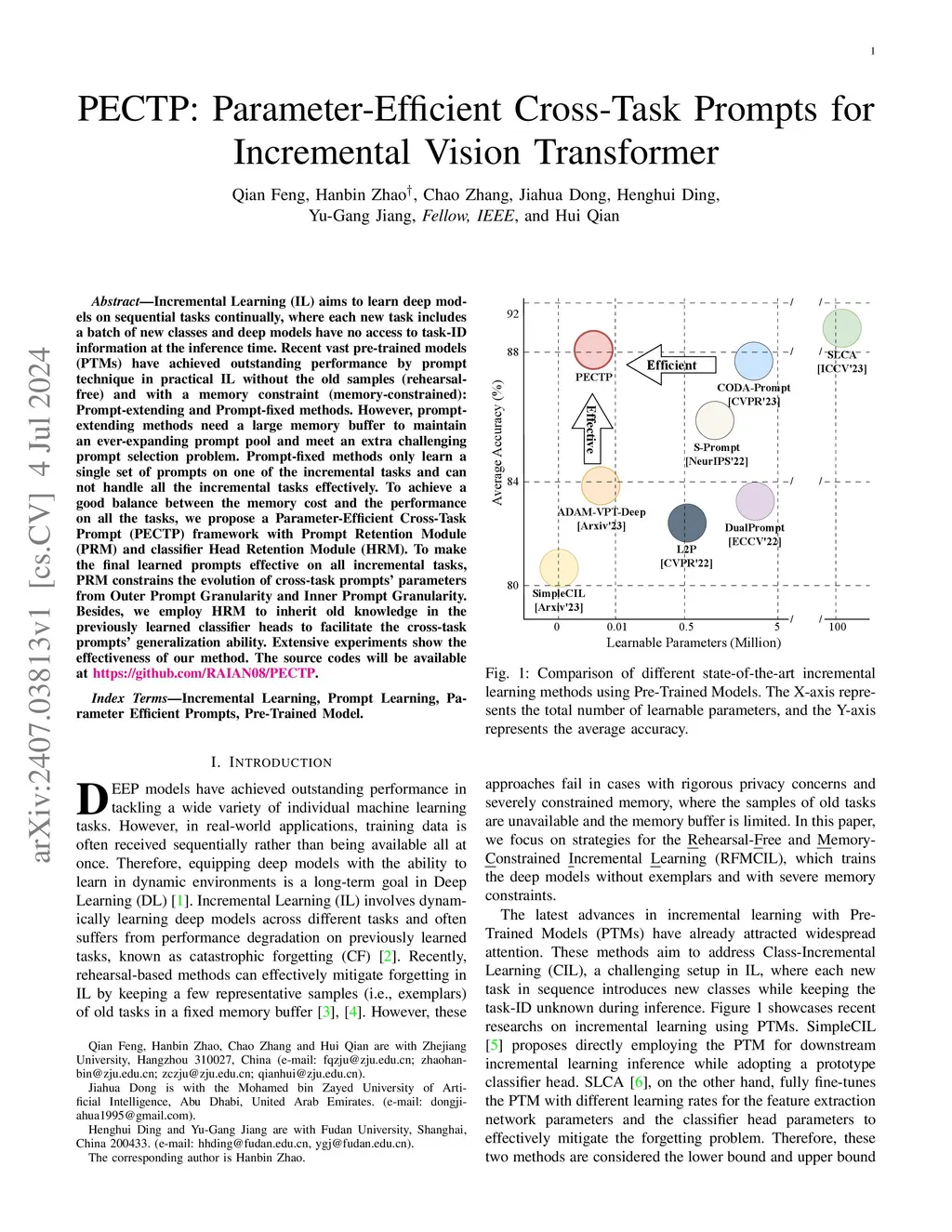 PECTP: Parameter-Efficient Cross-Task Prompts for Incremental Vision