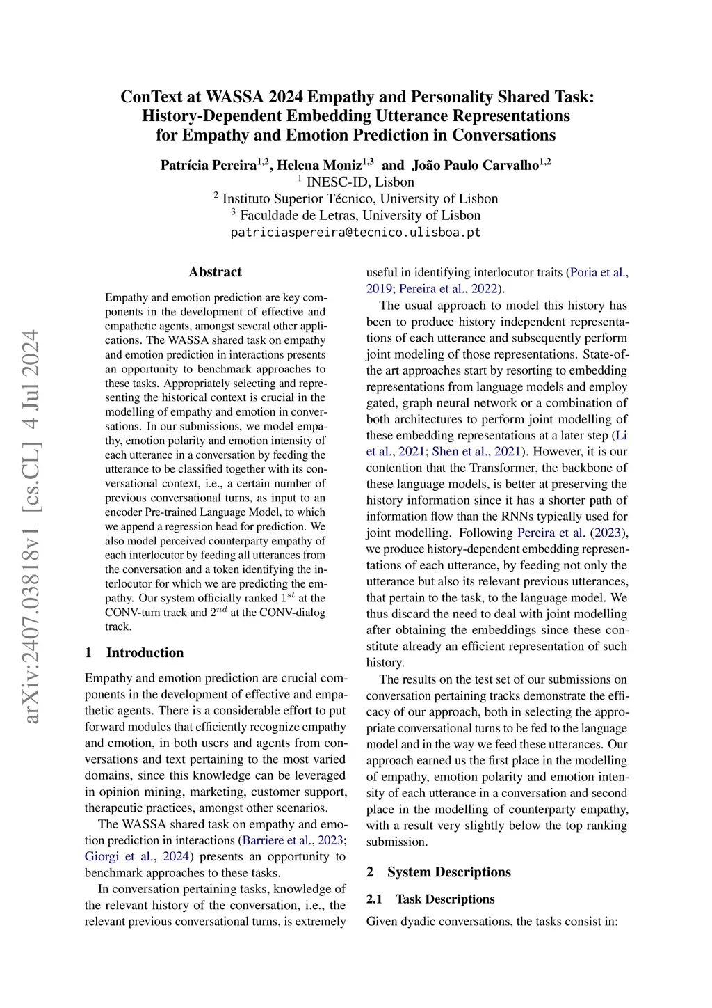 ConText at WASSA 2024 Empathy and Personality Shared Task: