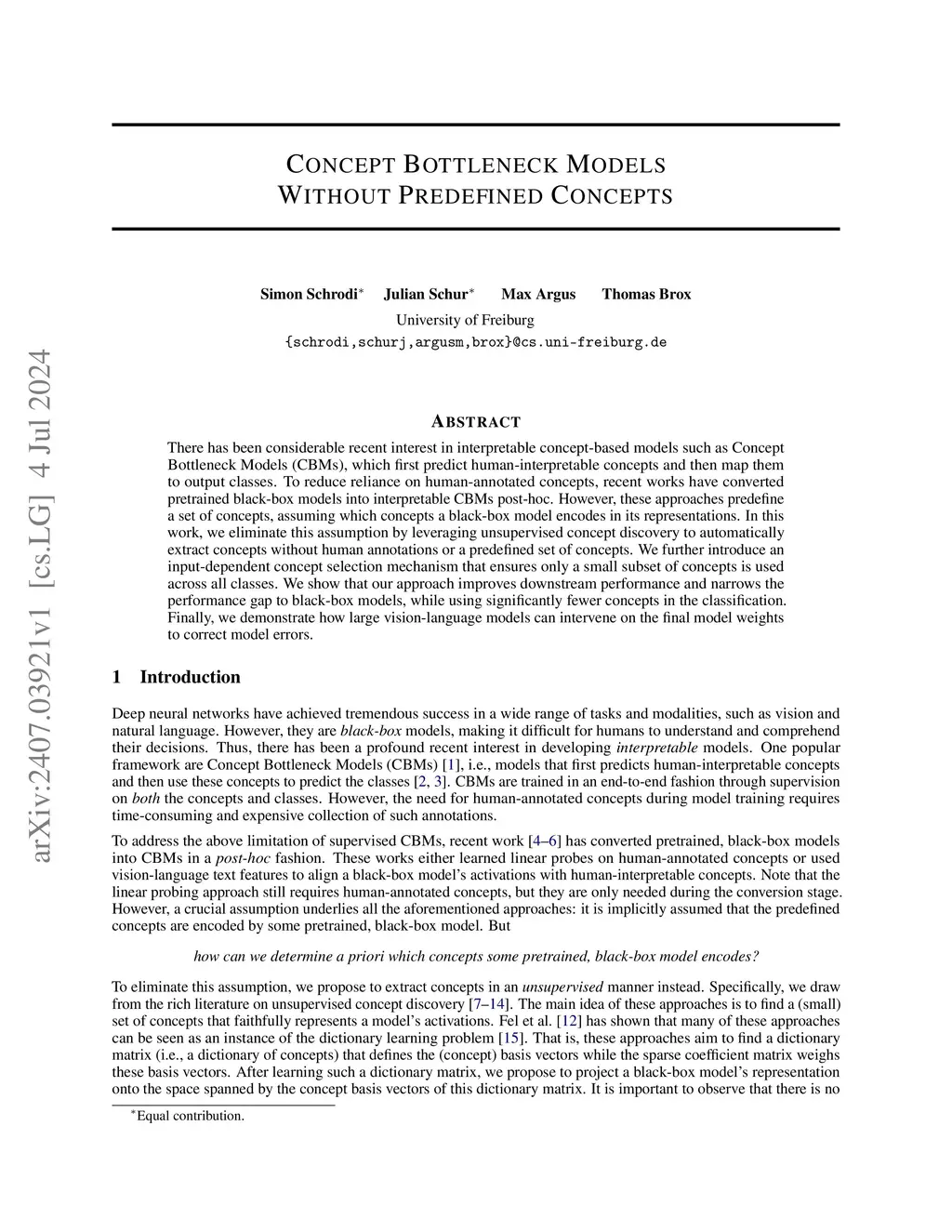 Concept Bottleneck Models Without Predefined Concepts