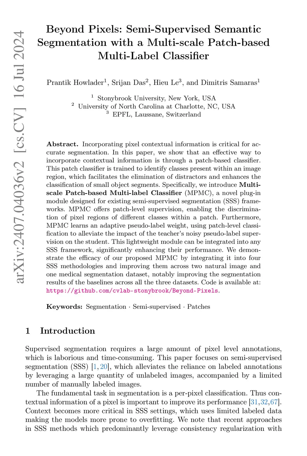 Beyond Pixels: Semi-Supervised Semantic Segmentation with a Multi-scale
