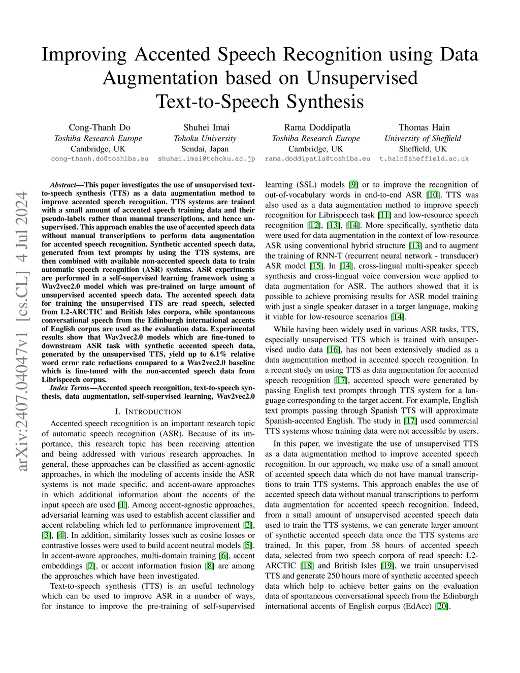 Improving Accented Speech Recognition using Data Augmentation based on