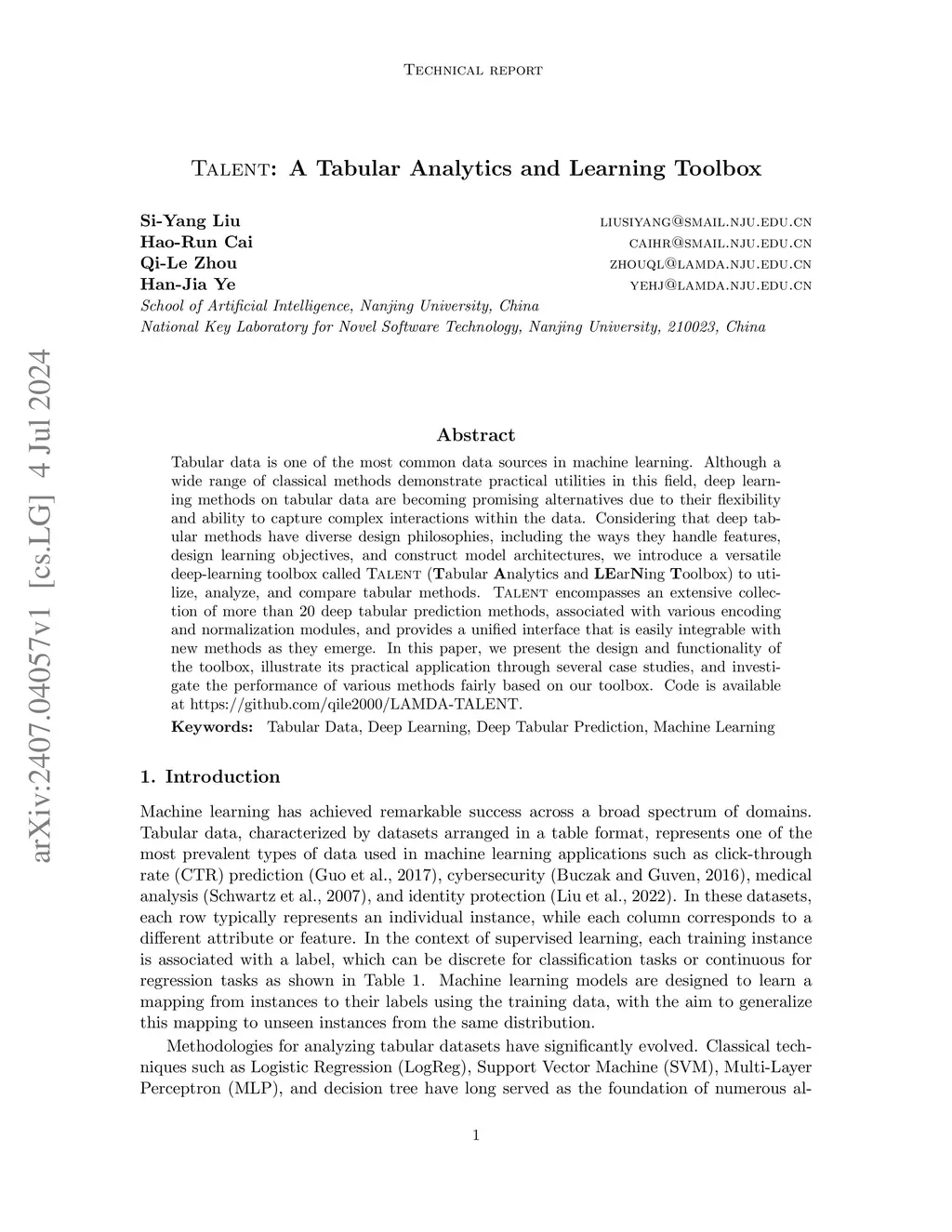 TALENT: A Tabular Analytics and Learning Toolbox
