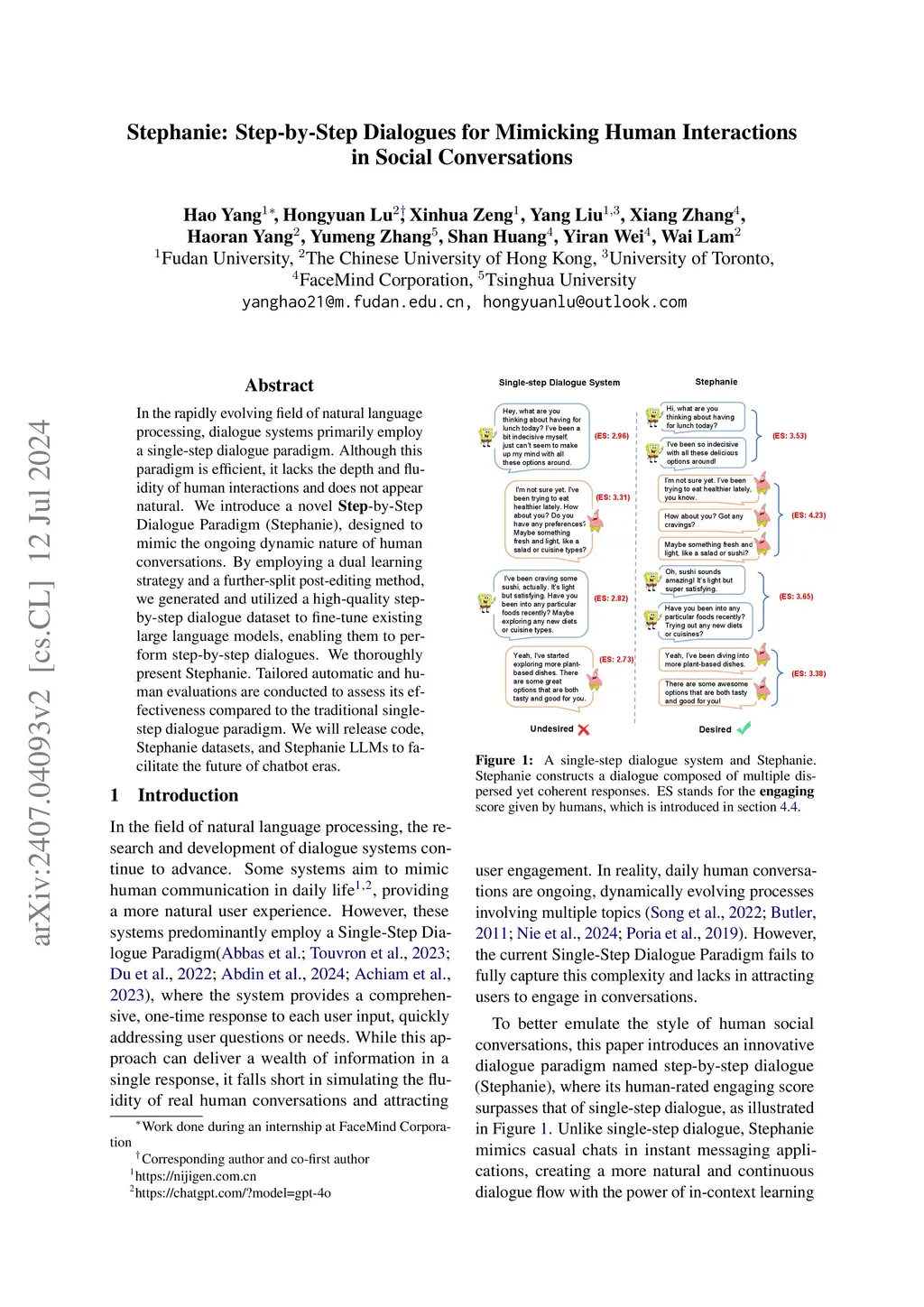 In the rapidly evolving field of natural language processing, dialogue systems primarily employ a single-step dialogue paradigm. Although this paradigm is efficient, it lacks the depth and fluidity of human interactions and does not appear natural. We introduce a novel \textbf{Step}-by-Step Dialogue Paradigm (Stephanie), designed to mimic the ongoing dynamic nature of human conversations. By employing a dual learning strategy and a further-split post-editing method, we generated and utilized a high-quality step-by-step dialogue dataset to fine-tune existing large language models, enabling them to perform step-by-step dialogues. We thoroughly present Stephanie. Tailored automatic and human evaluations are conducted to assess its effectiveness compared to the traditional single-step dialogue paradigm. We will release code, Stephanie datasets, and Stephanie LLMs to facilitate the future of chatbot eras.