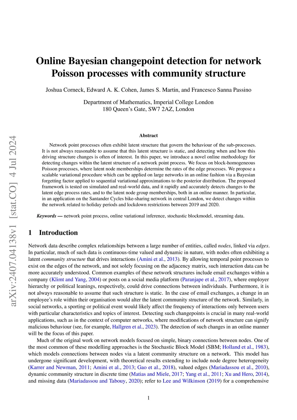 Network point processes often exhibit latent structure that govern the behaviour of the sub-processes. It is not always reasonable to assume that this latent structure is static, and detecting when and how this driving structure changes is often of interest. In this paper, we introduce a novel online methodology for detecting changes within the latent structure of a network point process. We focus on block-homogeneous Poisson processes, where latent node memberships determine the rates of the edge processes. We propose a scalable variational procedure which can be applied on large networks in an online fashion via a Bayesian forgetting factor applied to sequential variational approximations to the posterior distribution. The proposed framework is tested on simulated and real-world data, and it rapidly and accurately detects changes to the latent edge process rates, and to the latent node group memberships, both in an online manner. In particular, in an application on the Santander Cycles bike-sharing network in central London, we detect changes within the network related to holiday periods and lockdown restrictions between 2019 and 2020.