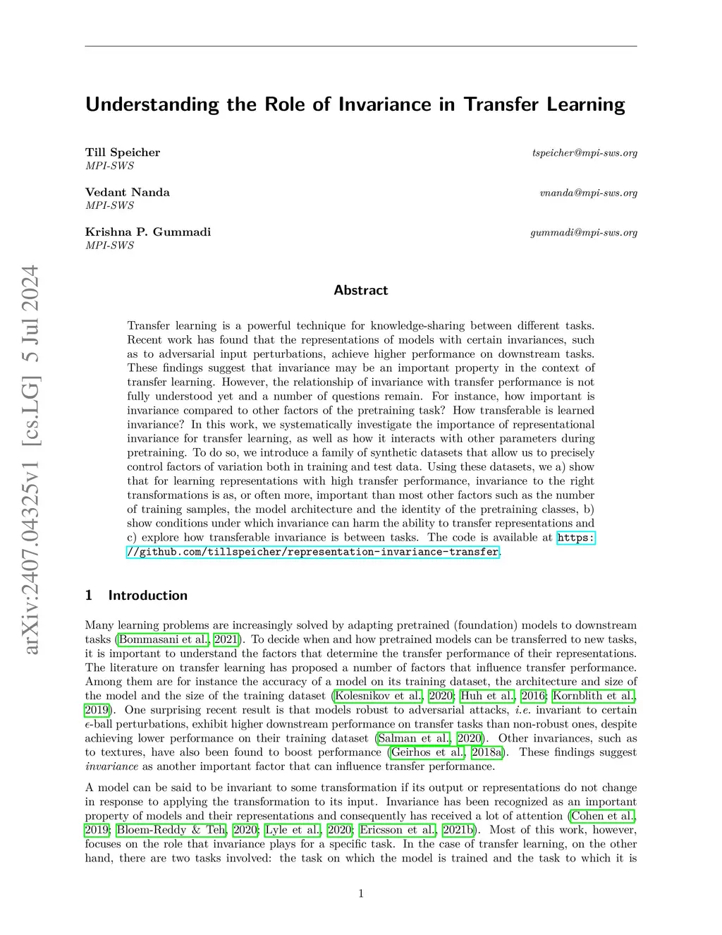 Understanding the Role of Invariance in Transfer Learning