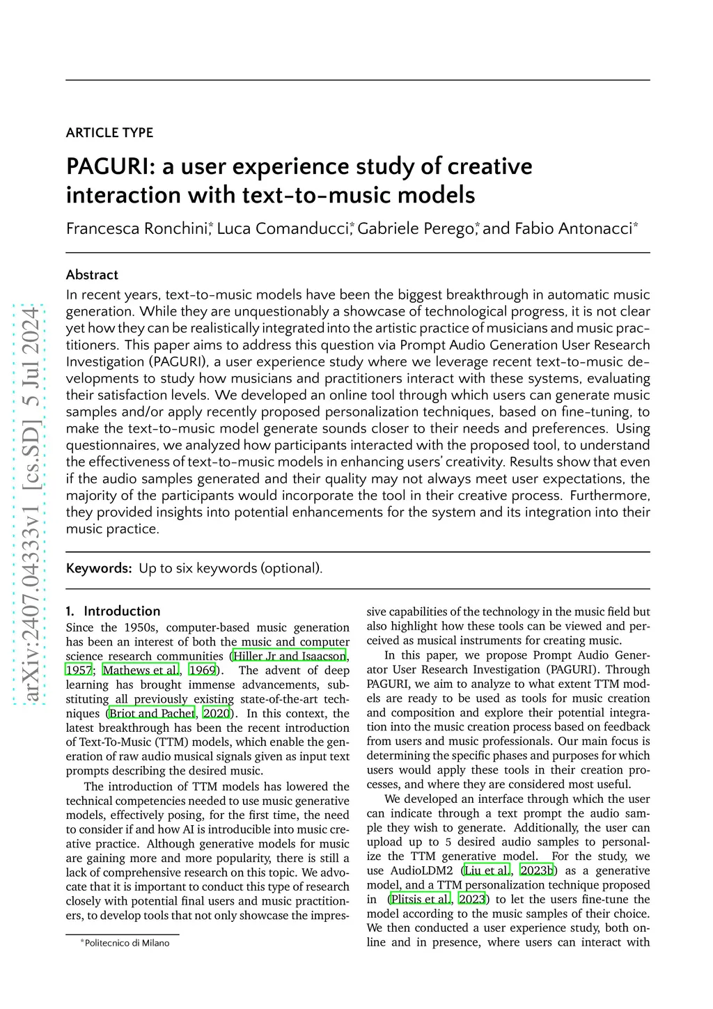 PAGURI: a user experience study of creative interaction with text-to-music models