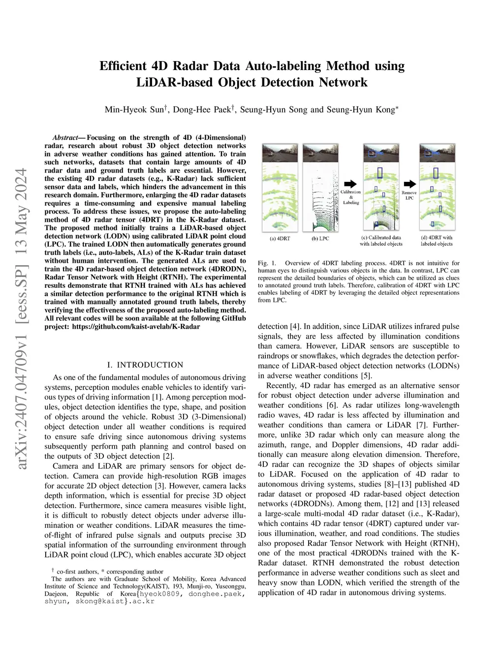 Focusing on the strength of 4D (4-Dimensional) radar, research about robust 3D object detection networks in adverse weather conditions has gained attention. To train such networks, datasets that contain large amounts of 4D radar data and ground truth labels are essential. However, the existing 4D radar datasets (e.g., K-Radar) lack sufficient sensor data and labels, which hinders the advancement in this research domain. Furthermore, enlarging the 4D radar datasets requires a time-consuming and expensive manual labeling process. To address these issues, we propose the auto-labeling method of 4D radar tensor (4DRT) in the K-Radar dataset. The proposed method initially trains a LiDAR-based object detection network (LODN) using calibrated LiDAR point cloud (LPC). The trained LODN then automatically generates ground truth labels (i.e., auto-labels, ALs) of the K-Radar train dataset without human intervention. The generated ALs are used to train the 4D radar-based object detection network (4DRODN), Radar Tensor Network with Height (RTNH). The experimental results demonstrate that RTNH trained with ALs has achieved a similar detection performance to the original RTNH which is trained with manually annotated ground truth labels, thereby verifying the effectiveness of the proposed auto-labeling method. All relevant codes will be soon available at the following GitHub project: https://github.com/kaist-avelab/K-Radar