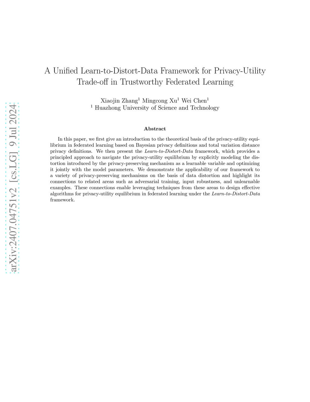 In this paper, we first give an introduction to the theoretical basis of the privacy-utility equilibrium in federated learning based on Bayesian privacy definitions and total variation distance privacy definitions. We then present the \textit{Learn-to-Distort-Data} framework, which provides a principled approach to navigate the privacy-utility equilibrium by explicitly modeling the distortion introduced by the privacy-preserving mechanism as a learnable variable and optimizing it jointly with the model parameters. We demonstrate the applicability of our framework to a variety of privacy-preserving mechanisms on the basis of data distortion and highlight its connections to related areas such as adversarial training, input robustness, and unlearnable examples. These connections enable leveraging techniques from these areas to design effective algorithms for privacy-utility equilibrium in federated learning under the \textit{Learn-to-Distort-Data} framework.