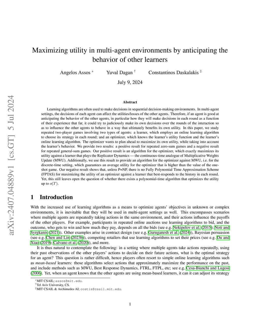 Learning algorithms are often used to make decisions in sequential decision-making environments. In multi-agent settings, the decisions of each agent can affect the utilities/losses of the other agents. Therefore, if an agent is good at anticipating the behavior of the other agents, in particular how they will make decisions in each round as a function of their experience that far, it could try to judiciously make its own decisions over the rounds of the interaction so as to influence the other agents to behave in a way that ultimately benefits its own utility. In this paper, we study repeated two-player games involving two types of agents: a learner, which employs an online learning algorithm to choose its strategy in each round; and an optimizer, which knows the learner's utility function and the learner's online learning algorithm. The optimizer wants to plan ahead to maximize its own utility, while taking into account the learner's behavior. We provide two results: a positive result for repeated zero-sum games and a negative result for repeated general-sum games. Our positive result is an algorithm for the optimizer, which exactly maximizes its utility against a learner that plays the Replicator Dynamics -- the continuous-time analogue of Multiplicative Weights Update (MWU). Additionally, we use this result to provide an algorithm for the optimizer against MWU, i.e.~for the discrete-time setting, which guarantees an average utility for the optimizer that is higher than the value of the one-shot game. Our negative result shows that, unless P=NP, there is no Fully Polynomial Time Approximation Scheme (FPTAS) for maximizing the utility of an optimizer against a learner that best-responds to the history in each round. Yet, this still leaves open the question of whether there exists a polynomial-time algorithm that optimizes the utility up to .