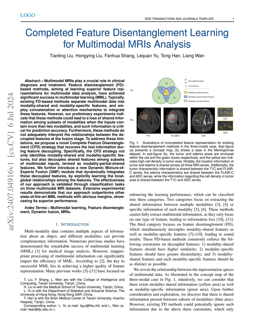 Completed Feature Disentanglement Learning for Multimodal MRIs Analysis