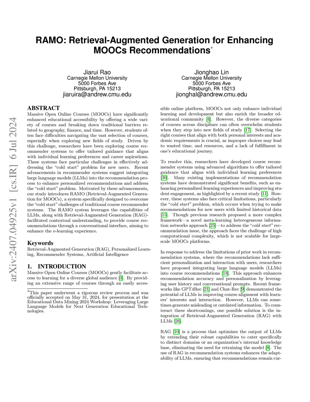 RAMO: Retrieval-Augmented Generation for Enhancing MOOCs Recommendations