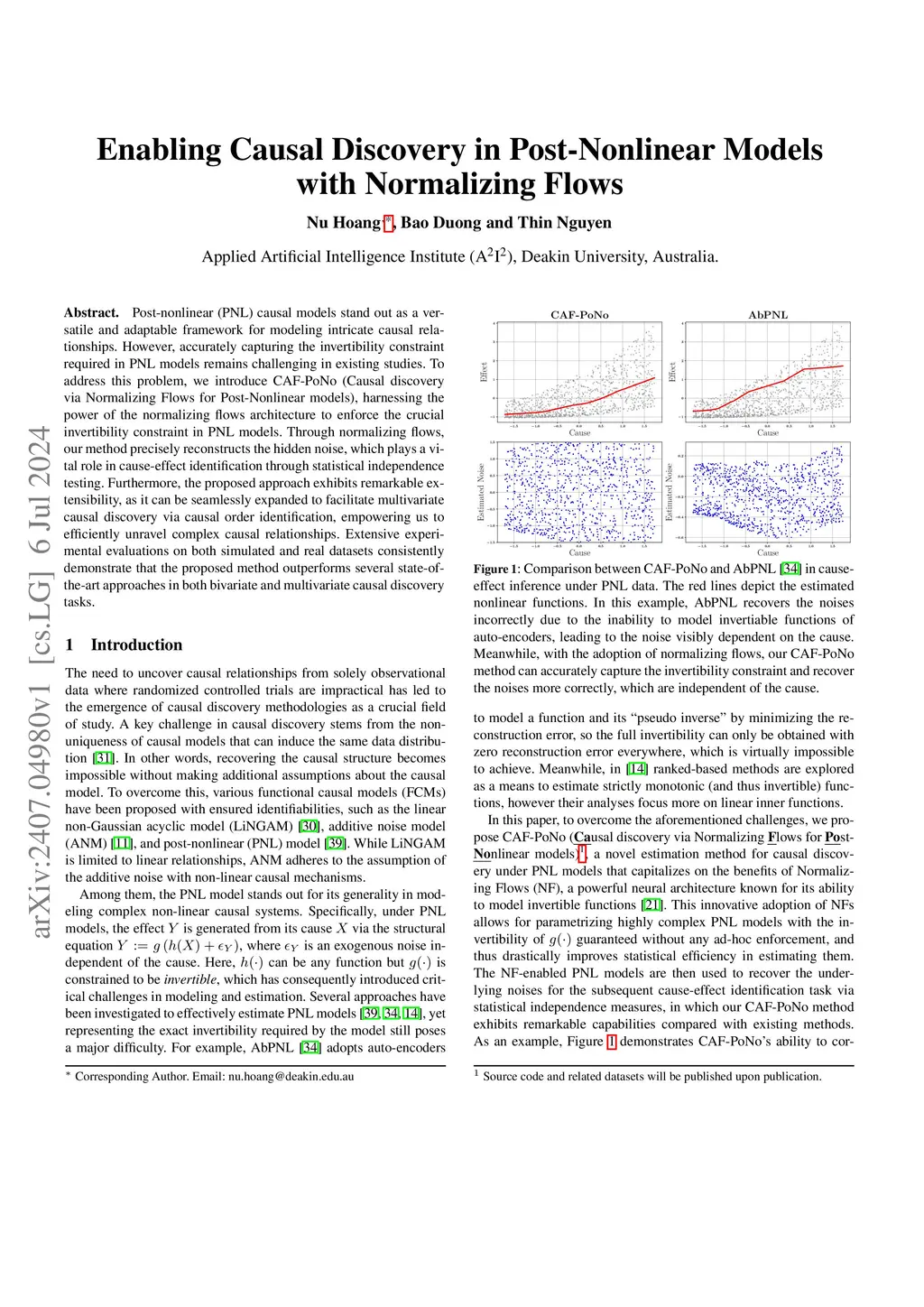 Post-nonlinear (PNL) causal models stand out as a versatile and adaptable framework for modeling intricate causal relationships. However, accurately capturing the invertibility constraint required in PNL models remains challenging in existing studies. To address this problem, we introduce CAF-PoNo (Causal discovery via Normalizing Flows for Post-Nonlinear models), harnessing the power of the normalizing flows architecture to enforce the crucial invertibility constraint in PNL models. Through normalizing flows, our method precisely reconstructs the hidden noise, which plays a vital role in cause-effect identification through statistical independence testing. Furthermore, the proposed approach exhibits remarkable extensibility, as it can be seamlessly expanded to facilitate multivariate causal discovery via causal order identification, empowering us to efficiently unravel complex causal relationships. Extensive experimental evaluations on both simulated and real datasets consistently demonstrate that the proposed method outperforms several state-of-the-art approaches in both bivariate and multivariate causal discovery tasks.