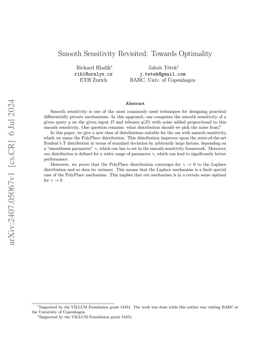 Smooth sensitivity is one of the most commonly used techniques for designing practical differentially private mechanisms. In this approach, one computes the smooth sensitivity of a given query on the given input and releases with noise added proportional to this smooth sensitivity. One question remains: what distribution should we pick the noise from? In this paper, we give a new class of distributions suitable for the use with smooth sensitivity, which we name the PolyPlace distribution. This distribution improves upon the state-of-the-art Student's T distribution in terms of standard deviation by arbitrarily large factors, depending on a "smoothness parameter" , which one has to set in the smooth sensitivity framework. Moreover, our distribution is defined for a wider range of parameter , which can lead to significantly better performance. Moreover, we prove that the PolyPlace distribution converges for to the Laplace distribution and so does its variance. This means that the Laplace mechanism is a limit special case of the PolyPlace mechanism. This implies that out mechanism is in a certain sense optimal for .