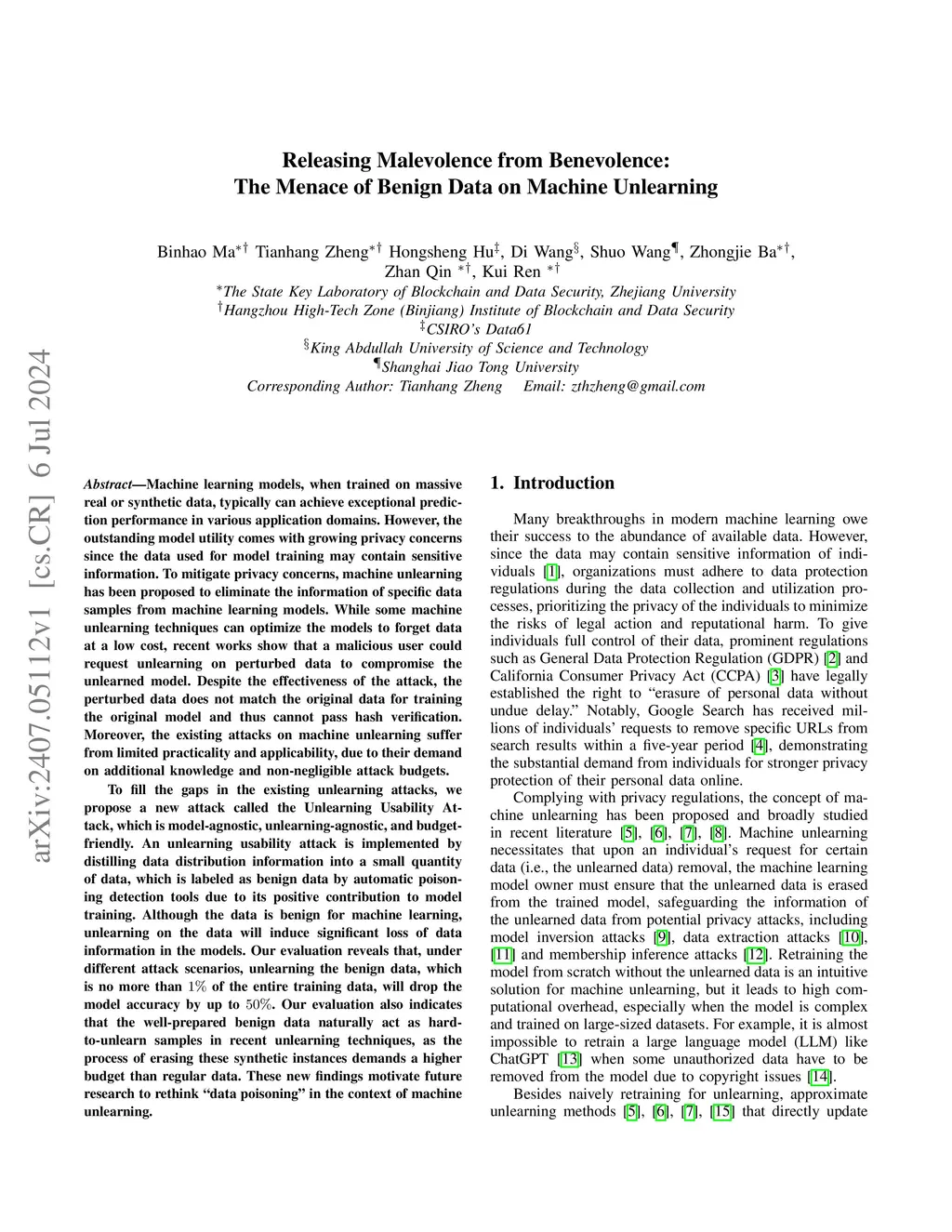 Machine learning models trained on vast amounts of real or synthetic data often achieve outstanding predictive performance across various domains. However, this utility comes with increasing concerns about privacy, as the training data may include sensitive information. To address these concerns, machine unlearning has been proposed to erase specific data samples from models. While some unlearning techniques efficiently remove data at low costs, recent research highlights vulnerabilities where malicious users could request unlearning on manipulated data to compromise the model. Despite these attacks' effectiveness, perturbed data differs from original training data, failing hash verification. Existing attacks on machine unlearning also suffer from practical limitations and require substantial additional knowledge and resources. To fill the gaps in current unlearning attacks, we introduce the Unlearning Usability Attack. This model-agnostic, unlearning-agnostic, and budget-friendly attack distills data distribution information into a small set of benign data. These data are identified as benign by automatic poisoning detection tools due to their positive impact on model training. While benign for machine learning, unlearning these data significantly degrades model information. Our evaluation demonstrates that unlearning this benign data, comprising no more than 1% of the total training data, can reduce model accuracy by up to 50%. Furthermore, our findings show that well-prepared benign data poses challenges for recent unlearning techniques, as erasing these synthetic instances demands higher resources than regular data. These insights underscore the need for future research to reconsider "data poisoning" in the context of machine unlearning.