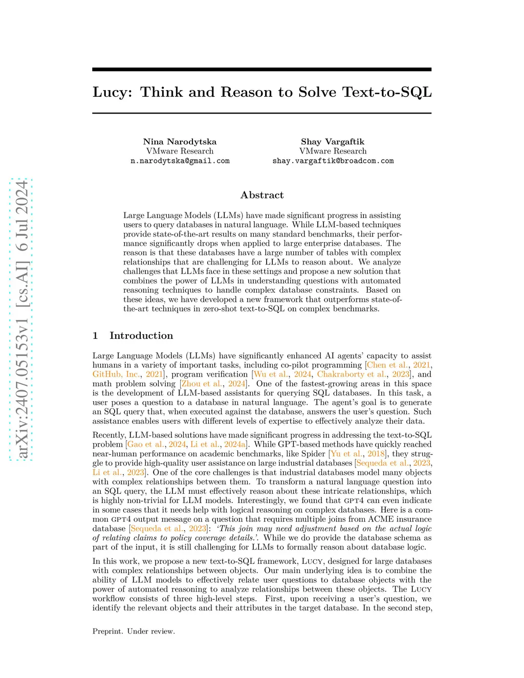 Large Language Models (LLMs) have made significant progress in assisting users to query databases in natural language. While LLM-based techniques provide state-of-the-art results on many standard benchmarks, their performance significantly drops when applied to large enterprise databases. The reason is that these databases have a large number of tables with complex relationships that are challenging for LLMs to reason about. We analyze challenges that LLMs face in these settings and propose a new solution that combines the power of LLMs in understanding questions with automated reasoning techniques to handle complex database constraints. Based on these ideas, we have developed a new framework that outperforms state-of-the-art techniques in zero-shot text-to-SQL on complex benchmarks