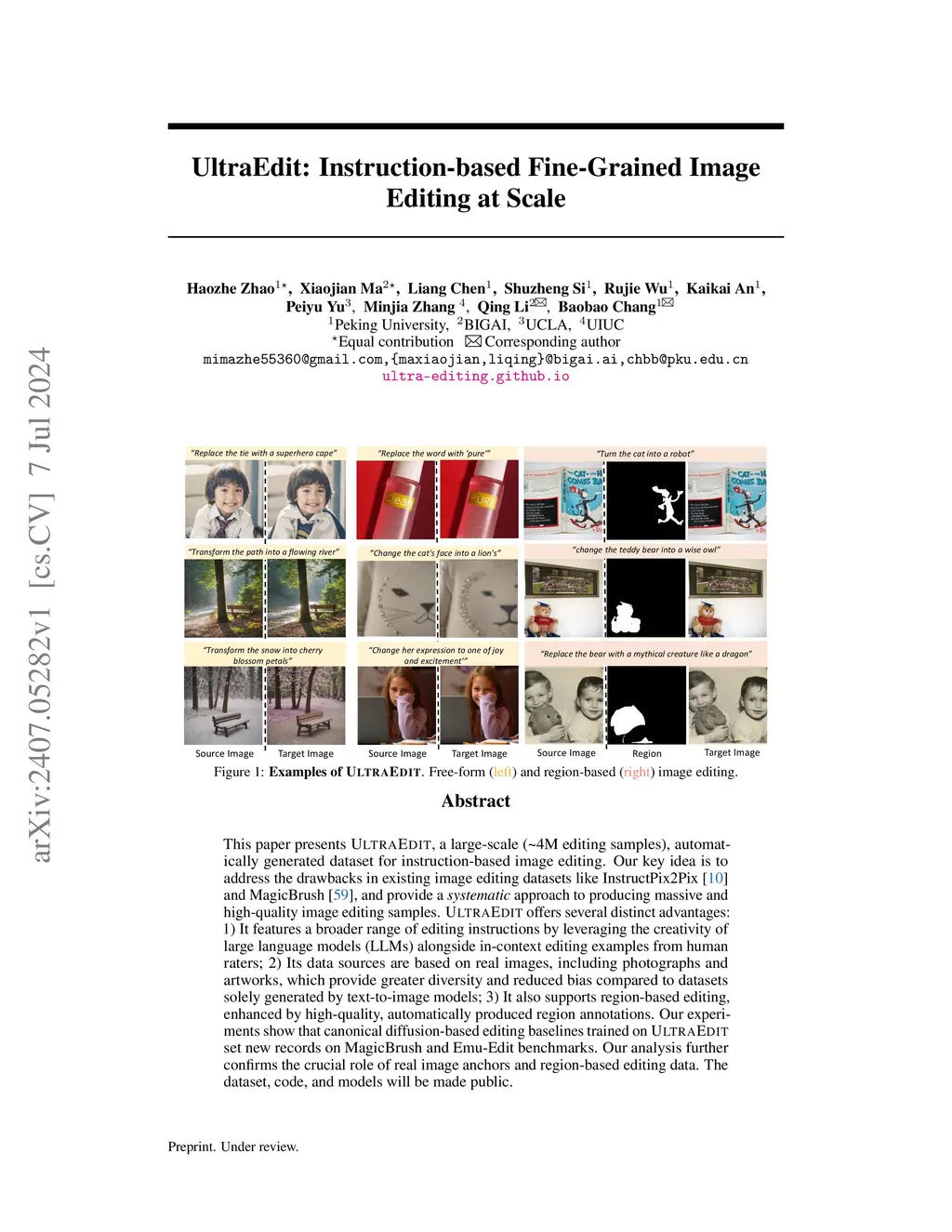 UltraEdit: Instruction-based Fine-Grained Image Editing at Scale