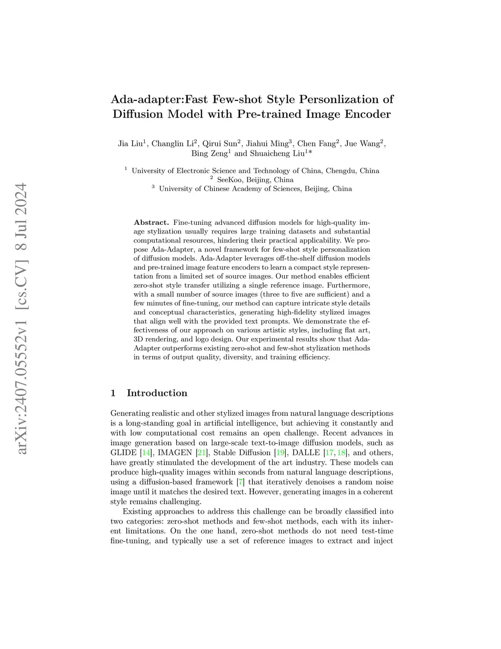 Ada-adapter:Fast Few-shot Style Personlization of Diffusion Model with
