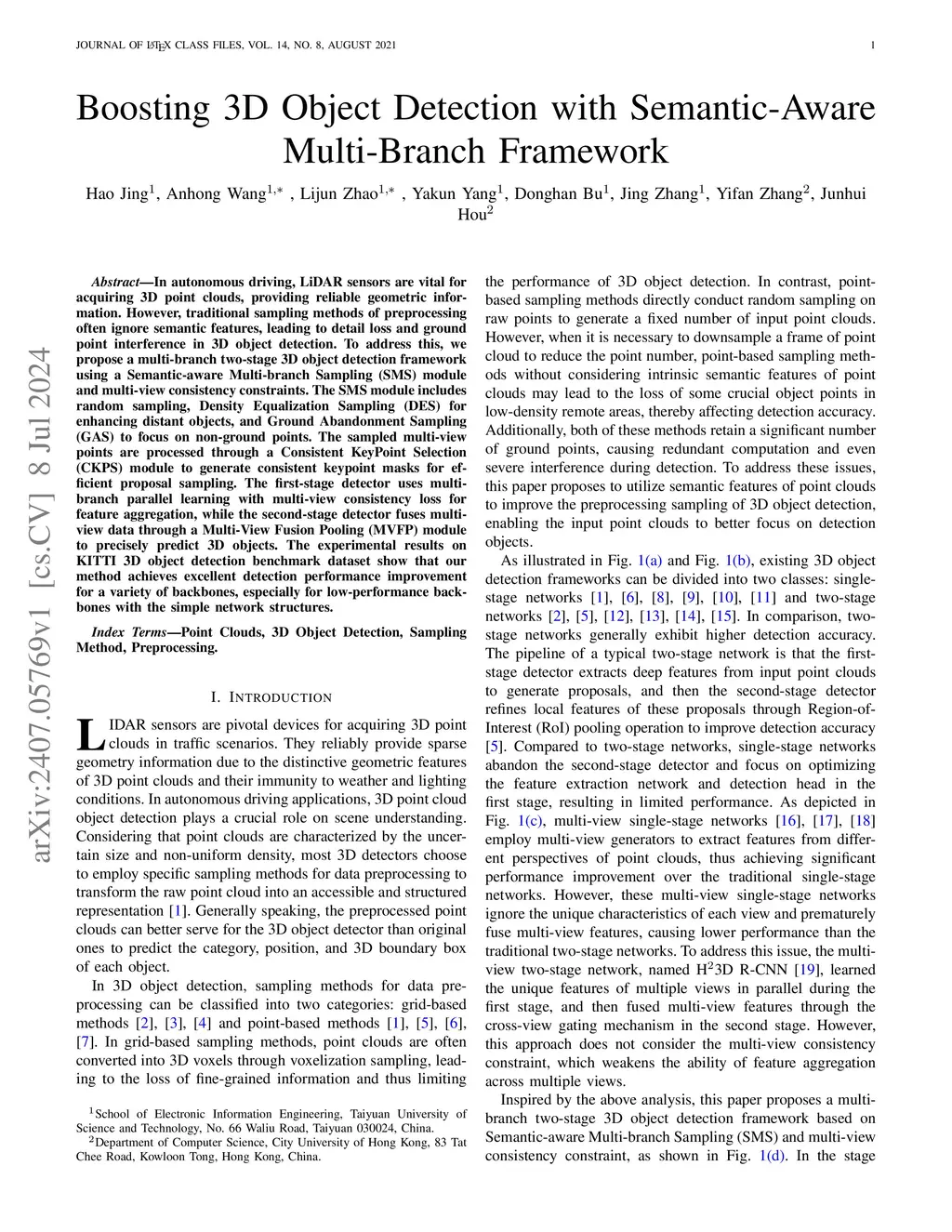 Boosting 3D Object Detection with Semantic-Aware Multi-Branch Framework